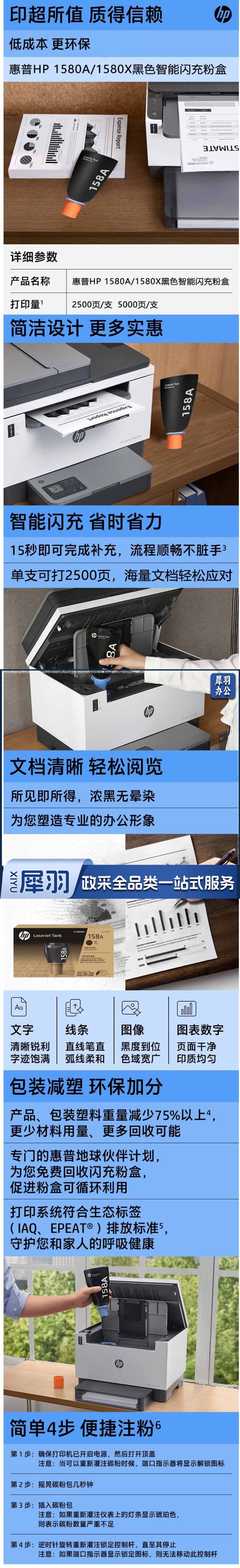 惠普 W1580A 硒鼓墨粉盒 黑色(158A)