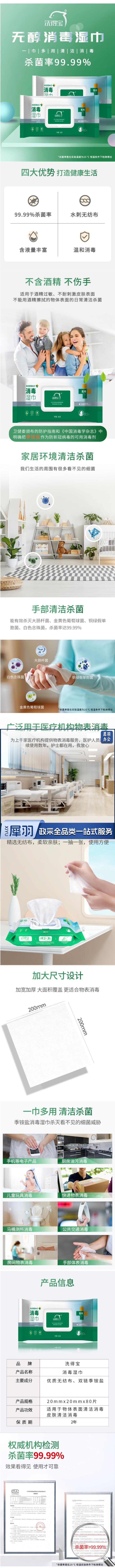 洗得宝季铵盐消毒湿巾卫生湿巾 80片大包装 不含酒精温和配方 (三包起售)