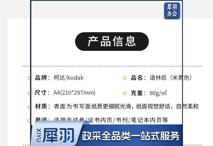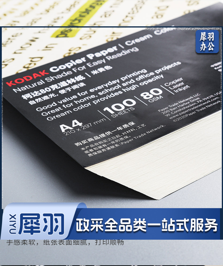 柯达Kodak 80gA4道林纸本色 米黄色打印纸 草稿纸 100张/包9891-301