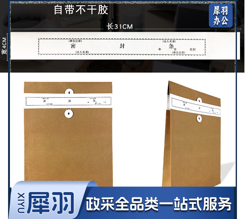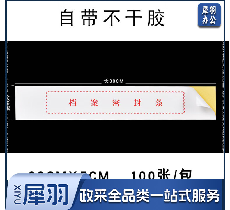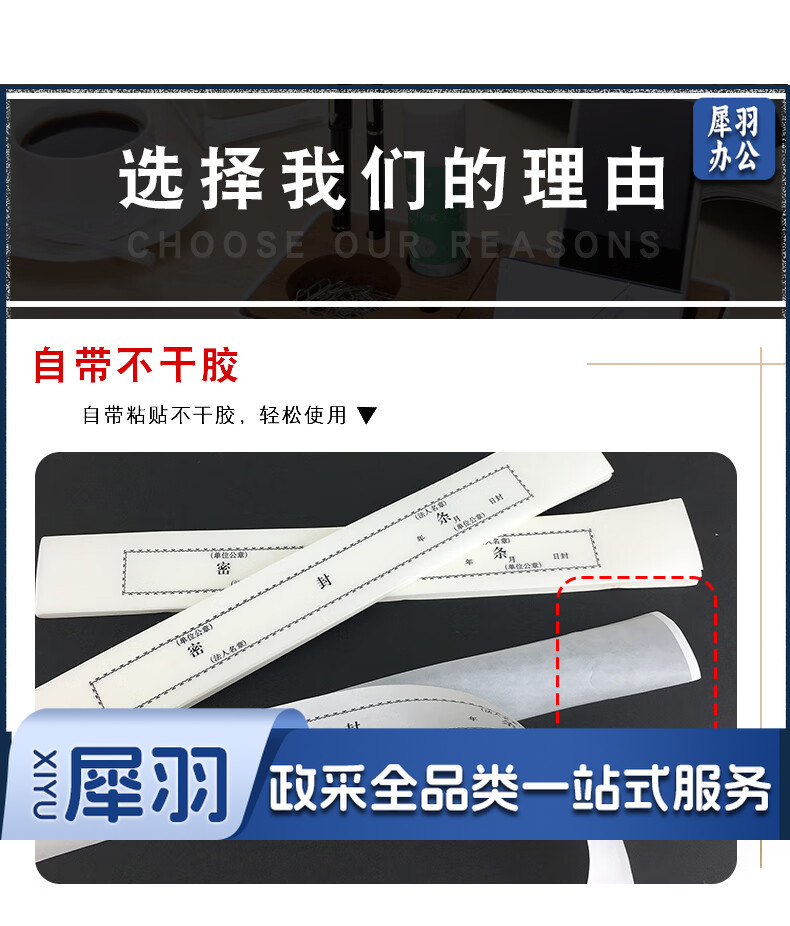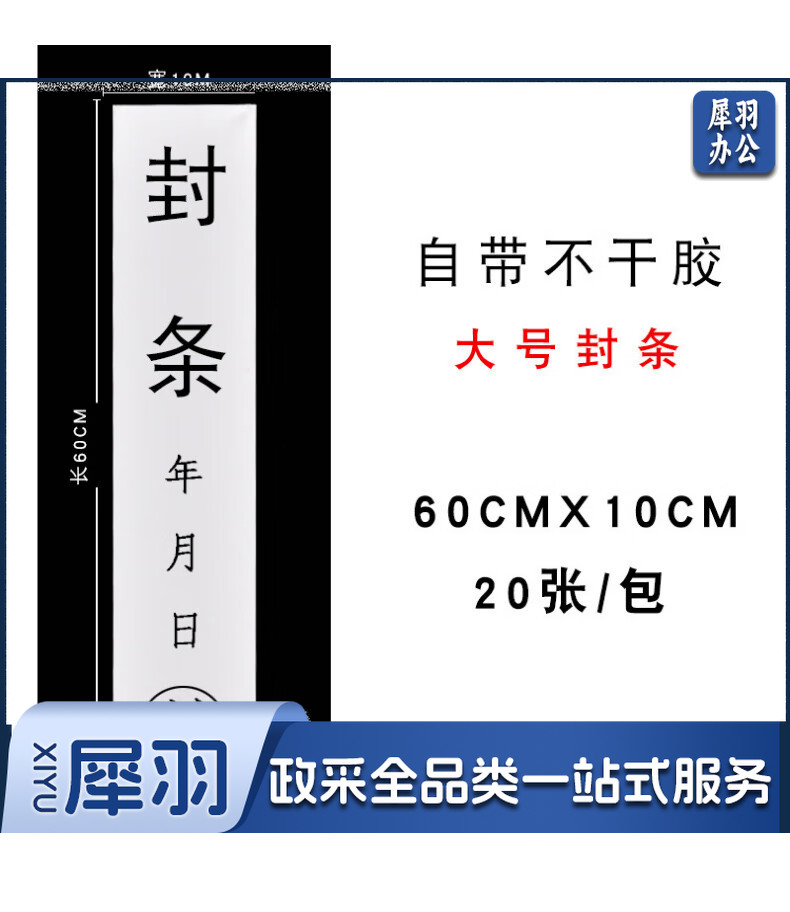 HKL-397 封条 投标文件档案袋密封条标签 大门封条 黑字厚款带胶 60x10cm 20条