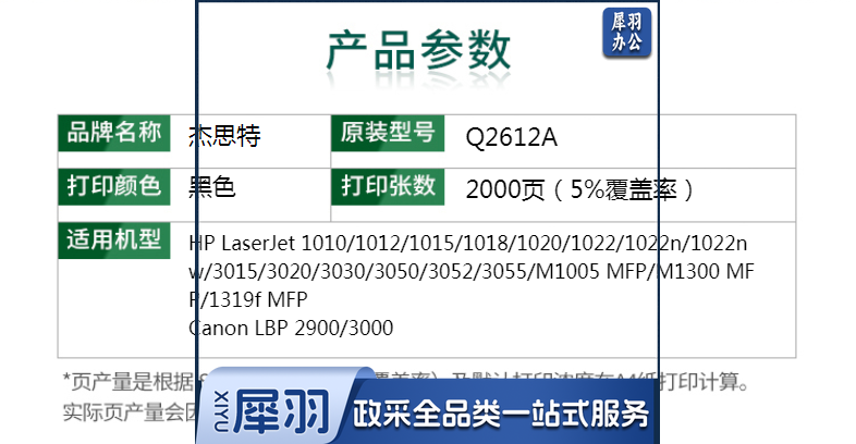 杰思特 12A JT-2612A适用惠普1005 1020plus 1010 3050 3015佳能303 2900