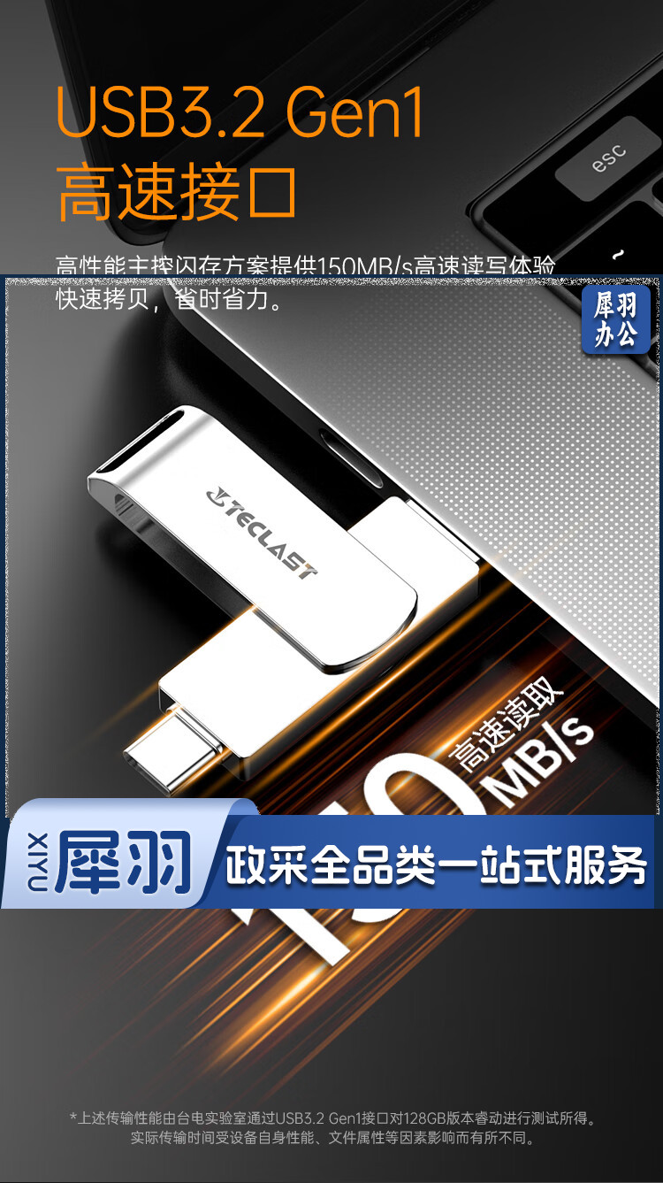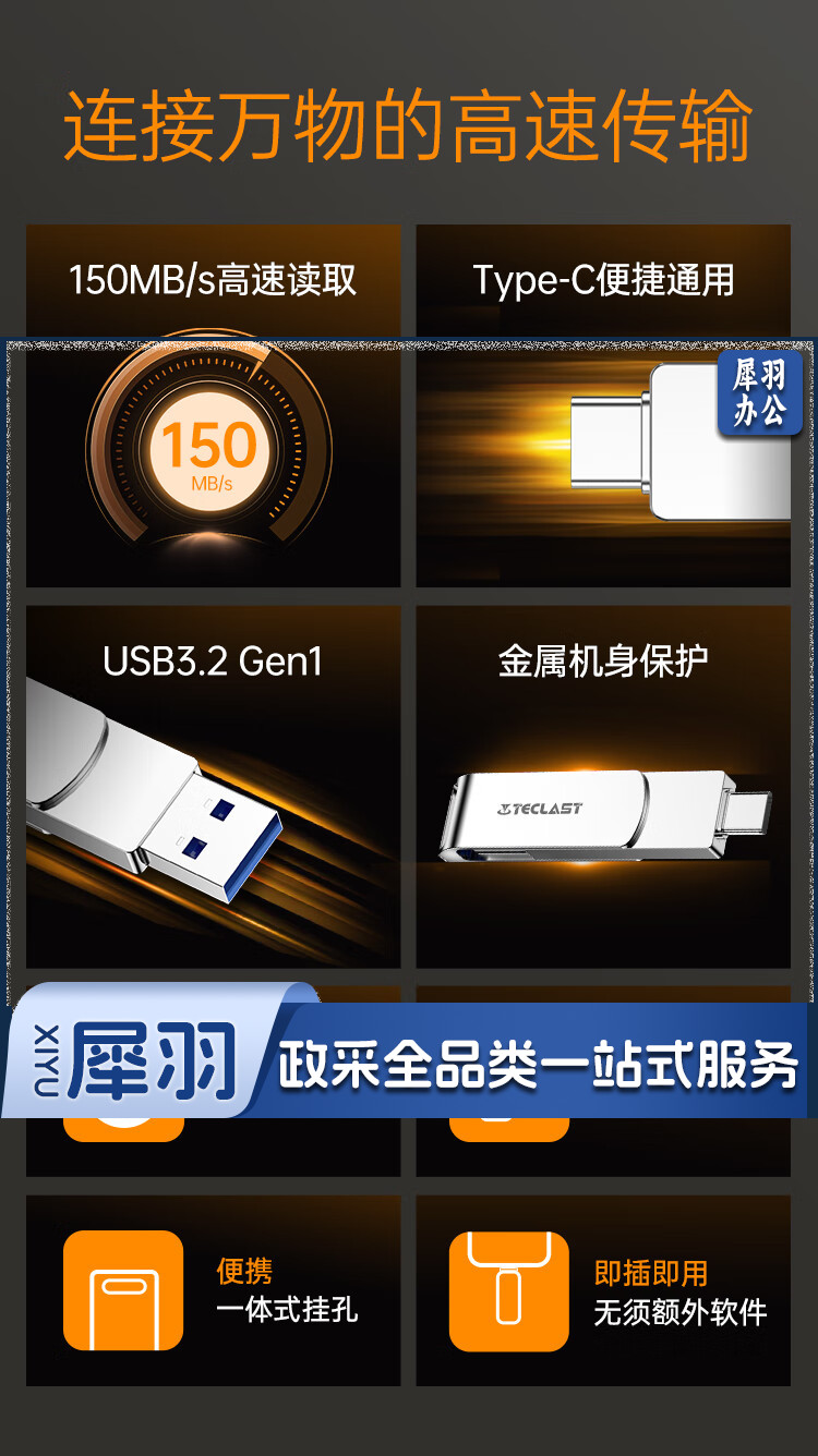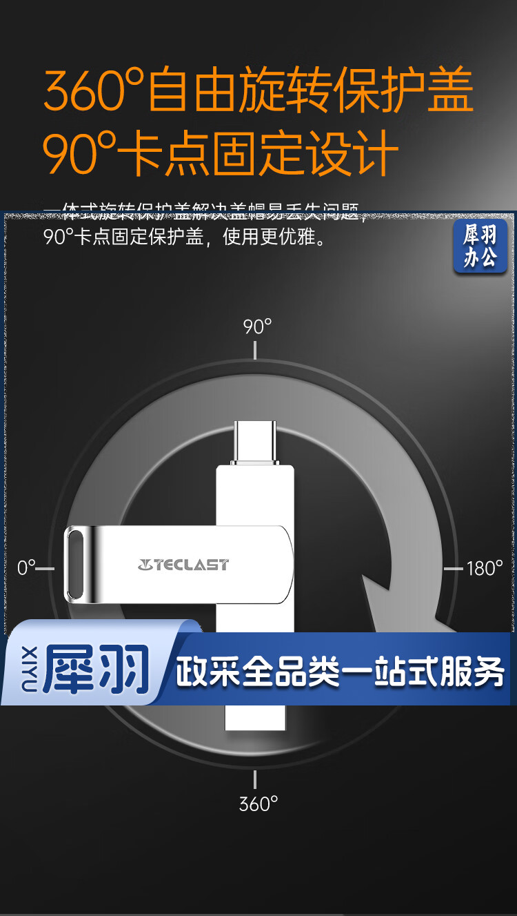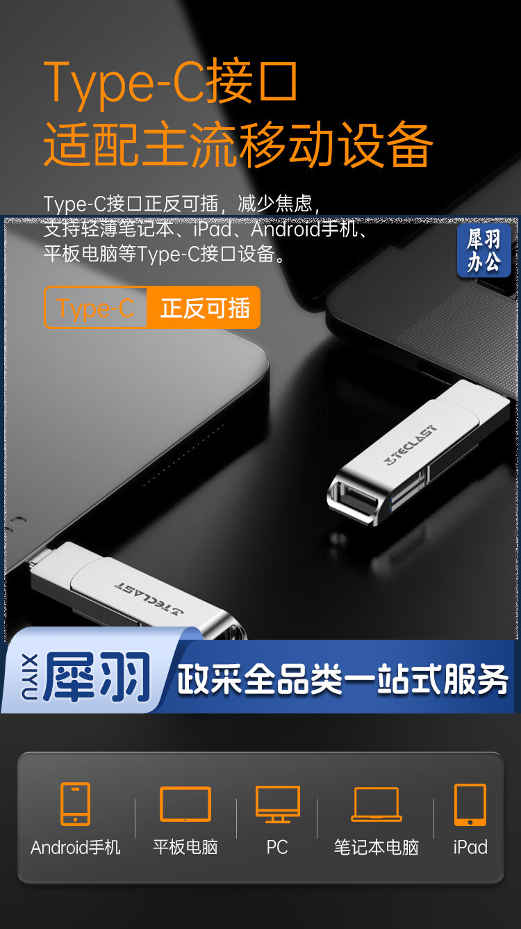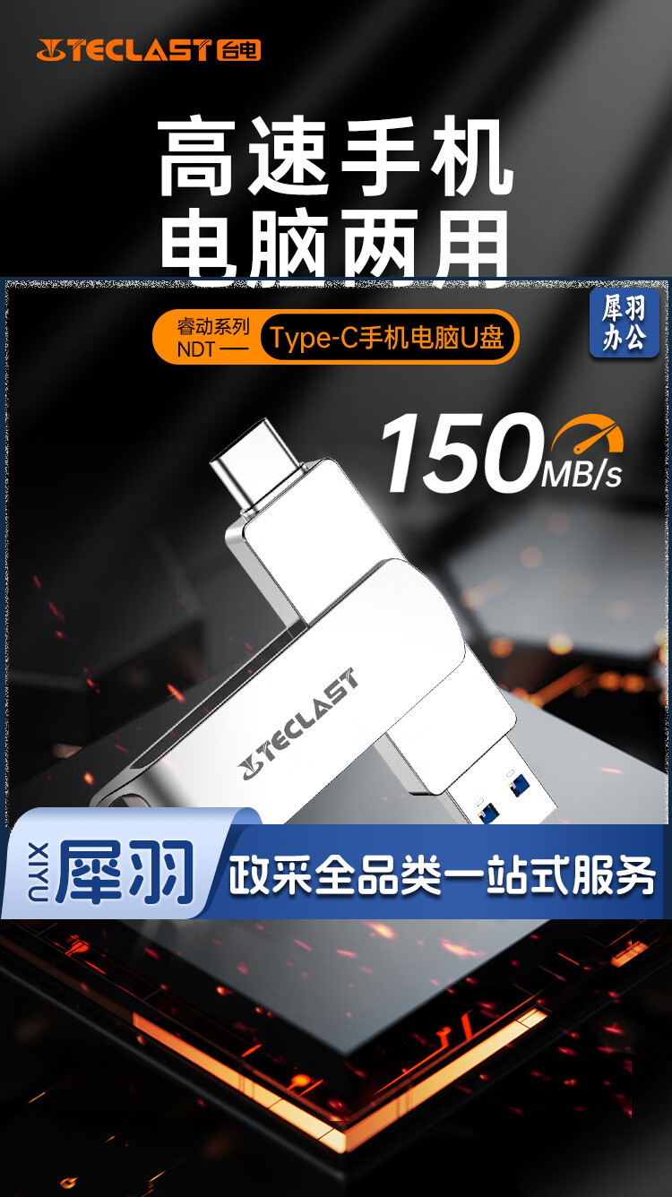 台电(TECLAST)256GB Type-C手机U盘 USB3.2双接口高速两用OTGU盘 安卓苹果笔记本电脑通用优盘256GBNDT