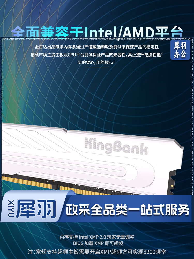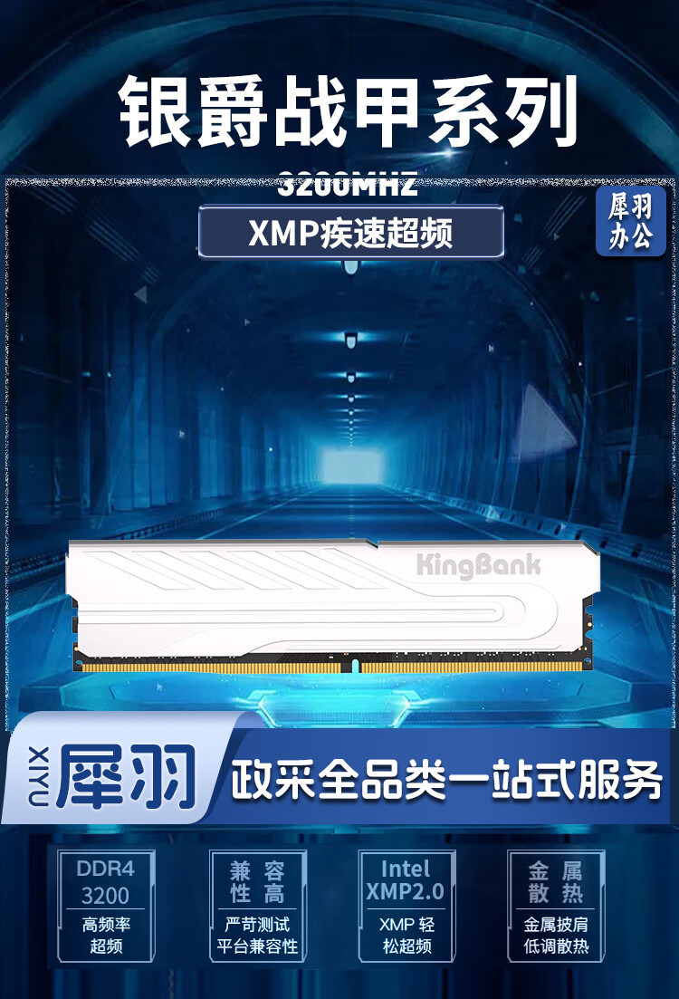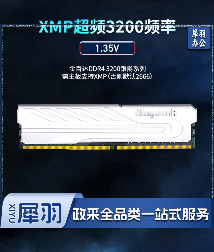 金百达(KINGBANK)16GB DDR4 3200 台式机内存条银爵系列 C16