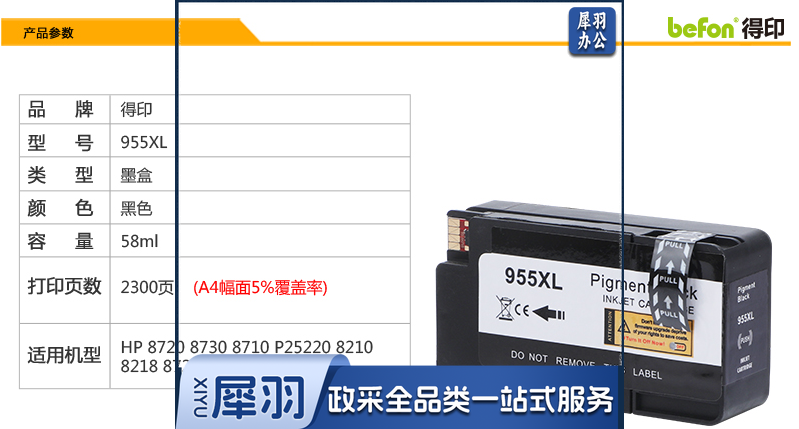 得印 墨盒 HB955XL B 黑色