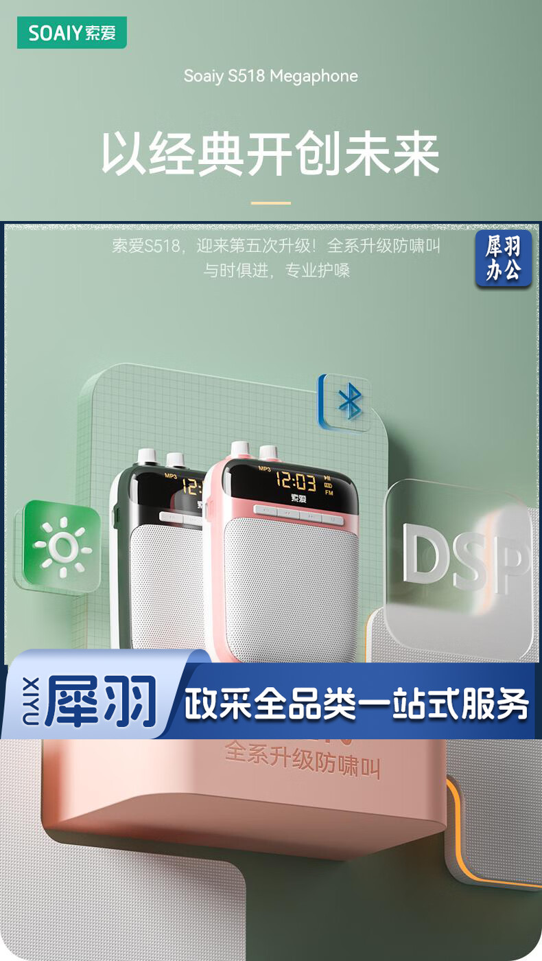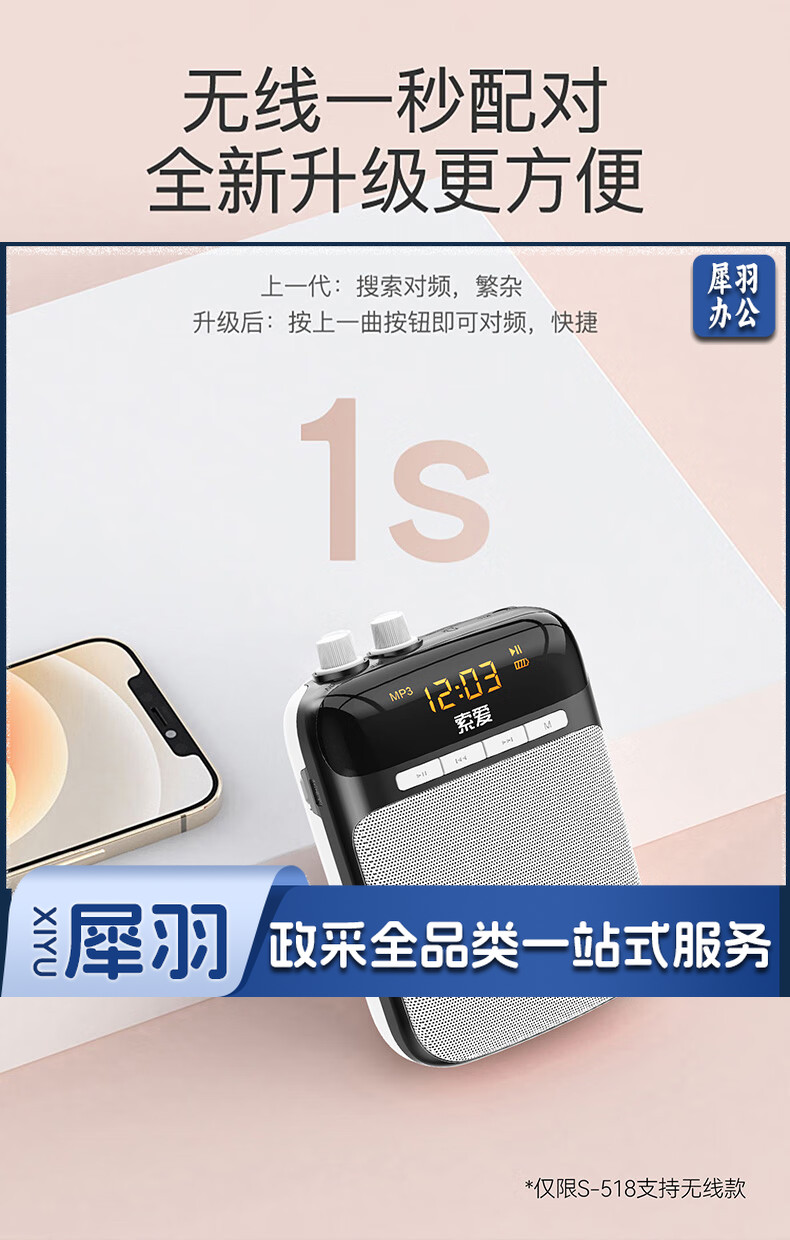 索爱(soaiy)S-518 无线便携扩音器 小蜜蜂教师导游专用腰挂大功率教学 睿智黑