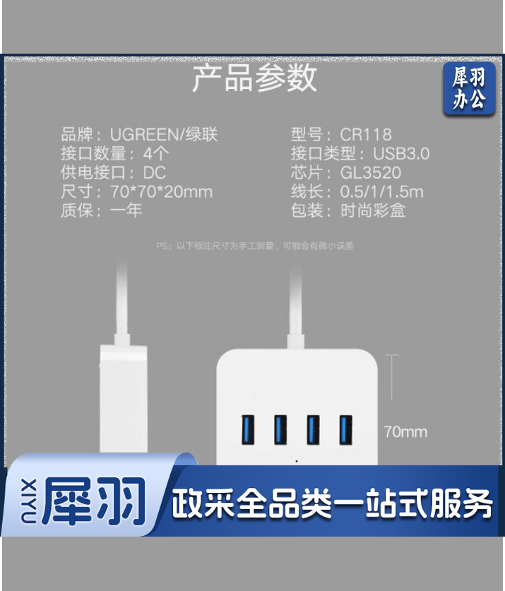 绿联 30201 USB集线器 USB3.0 0.5米 带电源接口