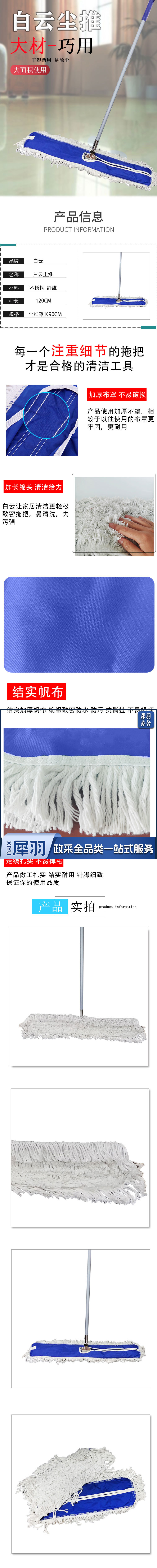 白云 90CM 大堂拖把尘推铝合金杆棉质拖布平板平推拖把墩布车间酒店