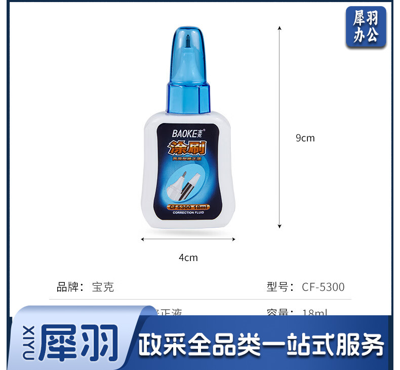 宝克(BAOKE)CF5300环保修正液 学生涂改液 改正液 涂刷两用型 学习 办公 用品 文具 18ml/瓶 颜色随机
