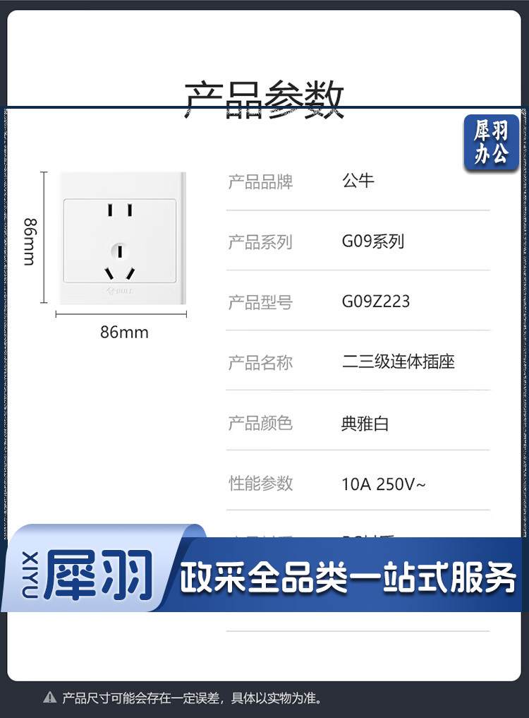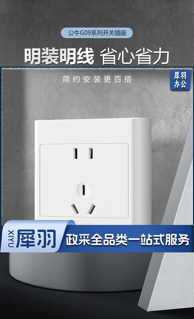 公牛(BULL) 明装开关插座 G09系列 正五孔开关 86型插座面板 G09Z223S