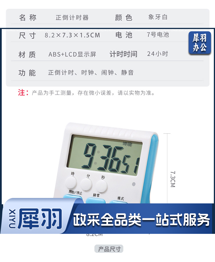 电子计时器 多功能厨房电子定时器 烘焙倒计时器磁吸 桌面时钟提醒器大屏幕 迷你学生闹钟