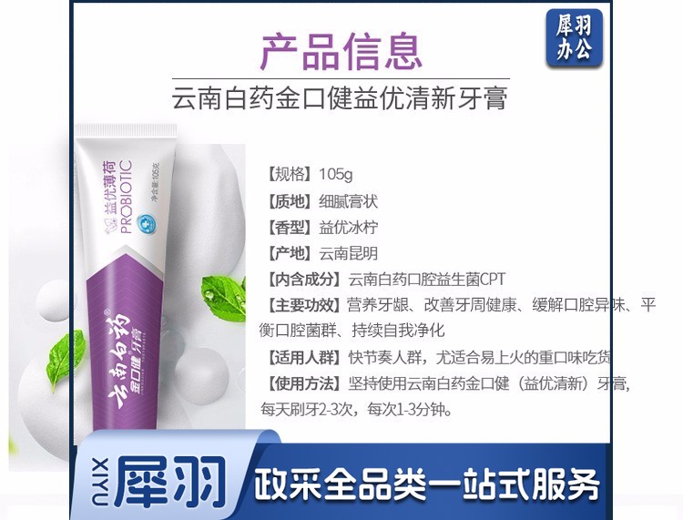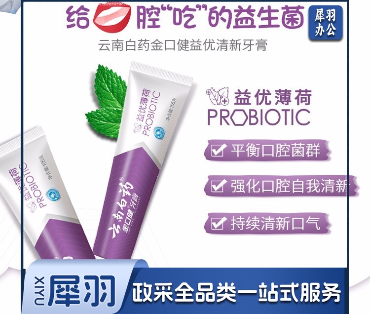 云南白 金口健 牙膏 持久清新口气 平衡口腔菌群 (益优薄荷145g )