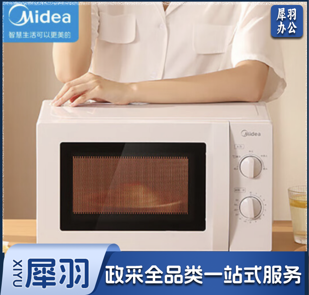 美的 M1-L213B 微波炉 快捷加热 360°转盘加热 旋钮操控