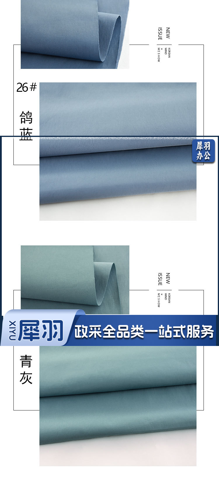 复古风微皱哑光风衣面料 布料 浅蓝色19# 0.5米/件(件)