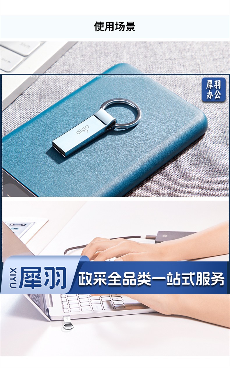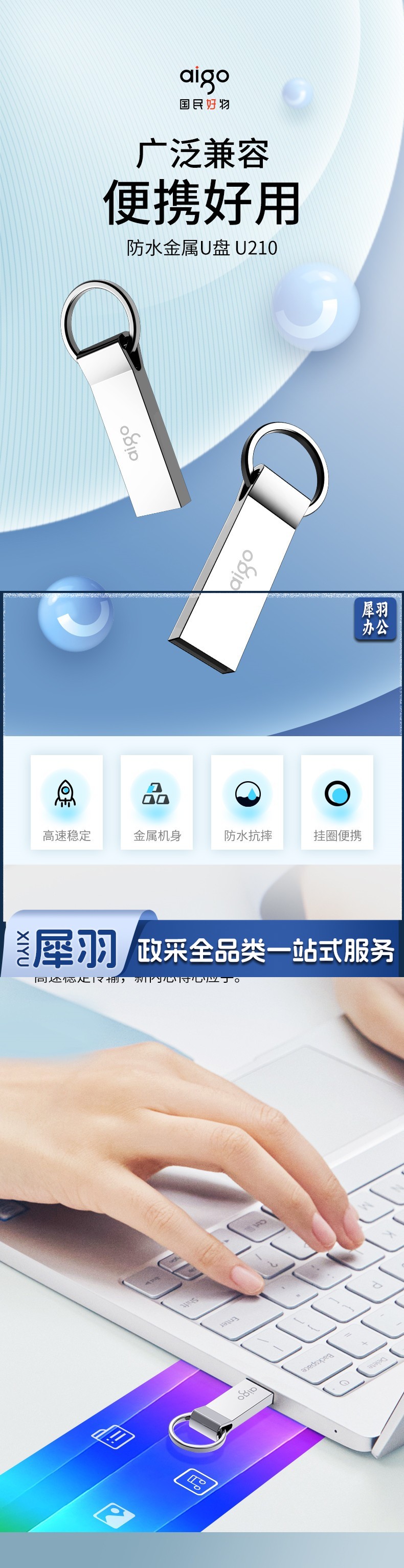 爱国者(aigo)64GB USB2.0 U盘 U210 金属U盘 车载U盘 银色 一体封装 便携挂环