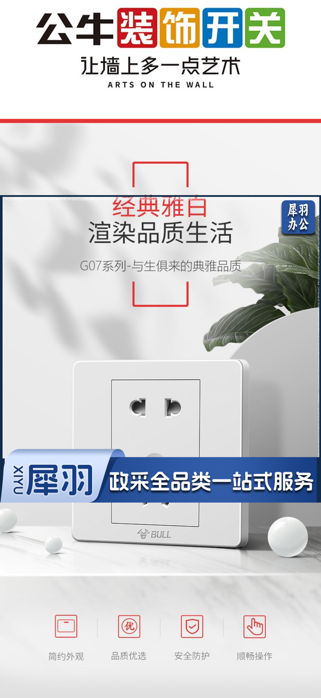 公牛(BULL)开关插座面板 G07象牙白 五孔10A