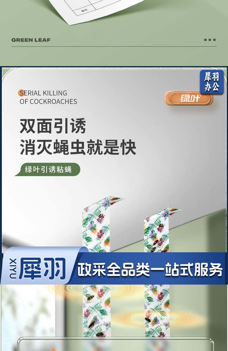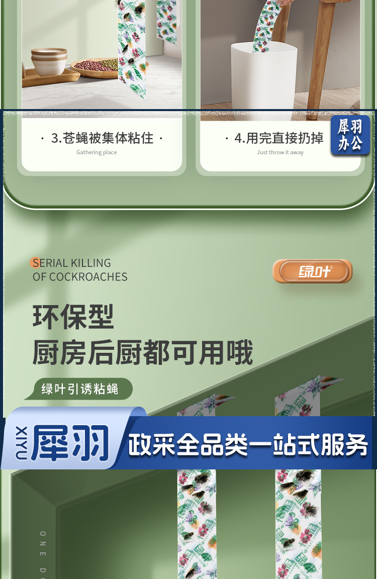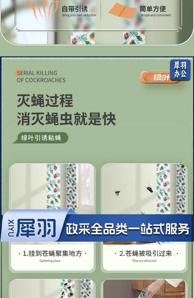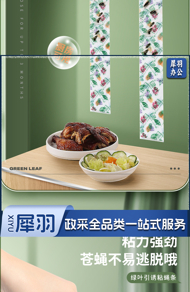 绿叶(Green Leaf)粘蝇板粘蝇条 粘苍蝇彩带 粘飞虫挂条70cm*20条装
