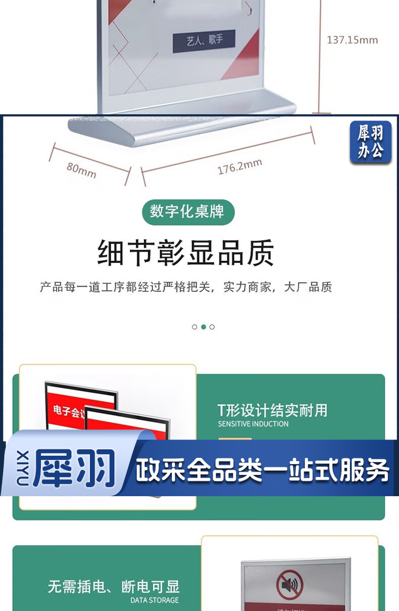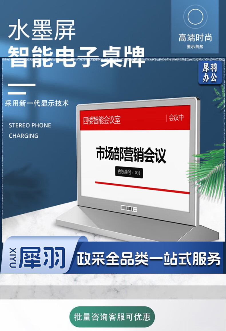 无线电子墨水屏桌牌7.5双面智能会议台签摆台台牌三色七色水墨屏智能电子桌签 三色7.5英寸双面电子桌牌(蓝牙款)银色款