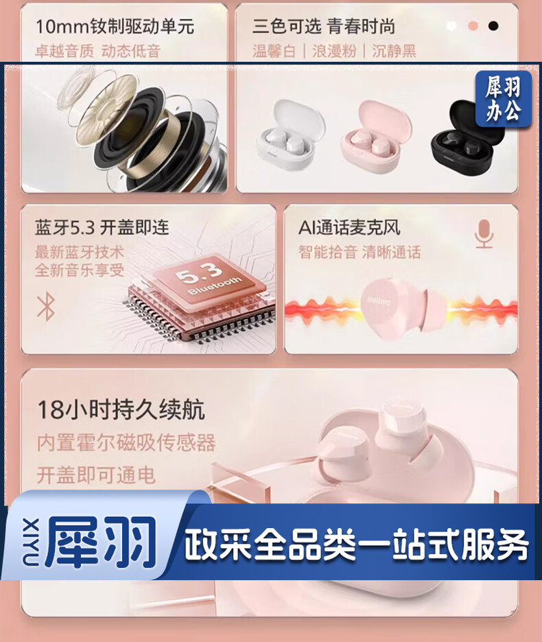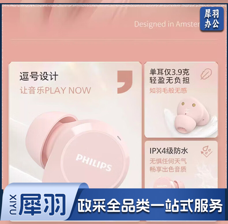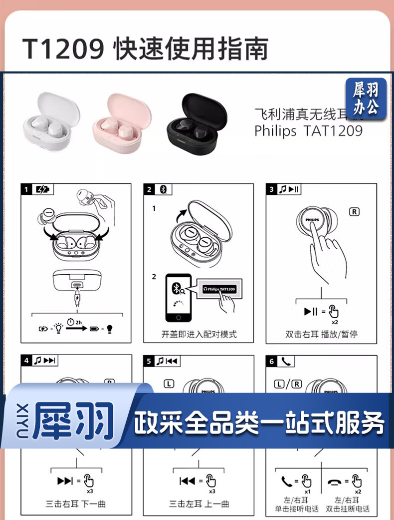 飞利浦(PHILIPS)豆式入耳耳机真无线蓝牙耳机运动耳机游戏耳机回音降噪智能配对苹果华为手机TAT1209白色