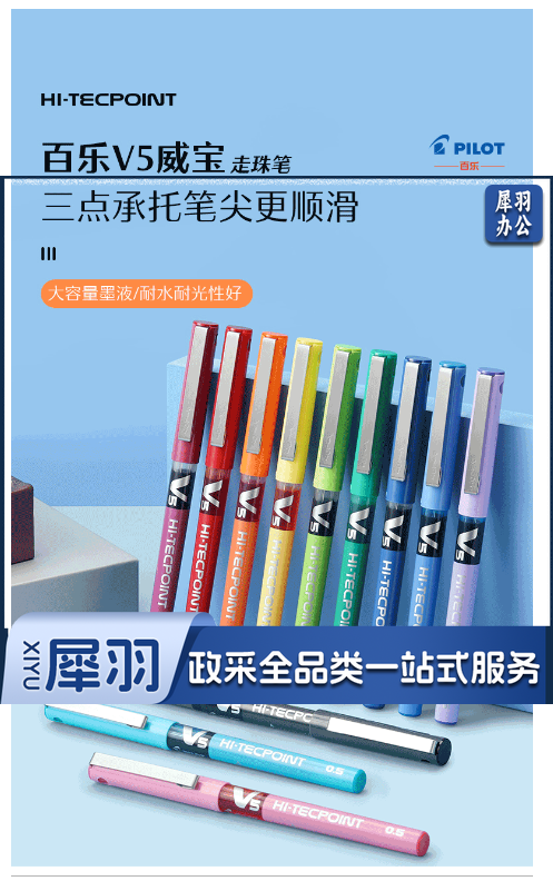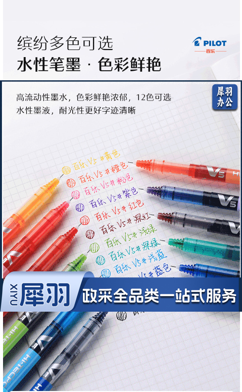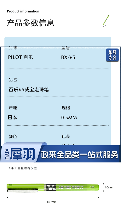 百乐(PILOT)BX-V5 直液式走珠笔小V5中性水笔针管式中性笔签字笔 绿色 0.5mm 单支价