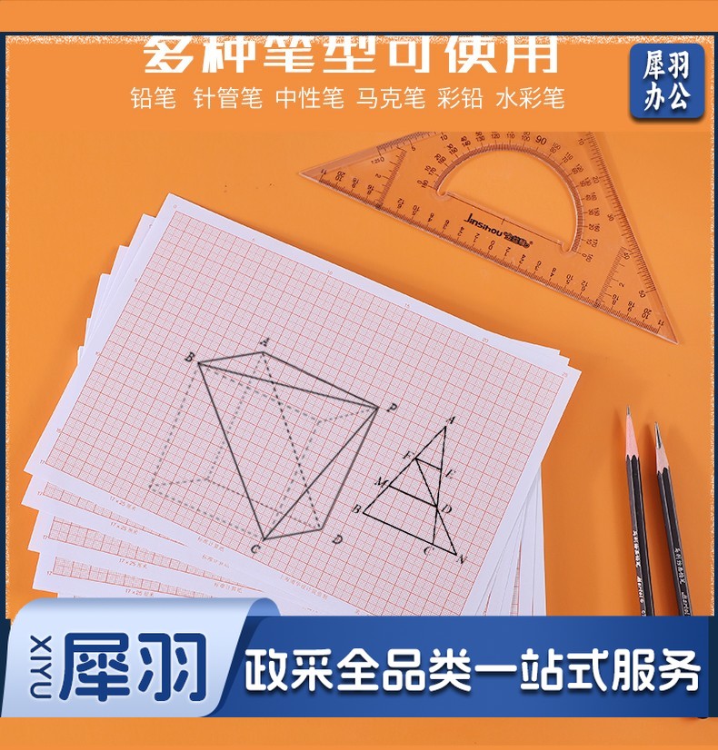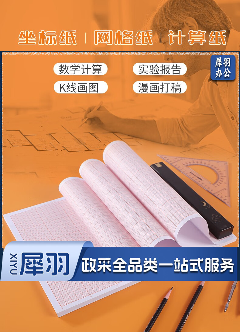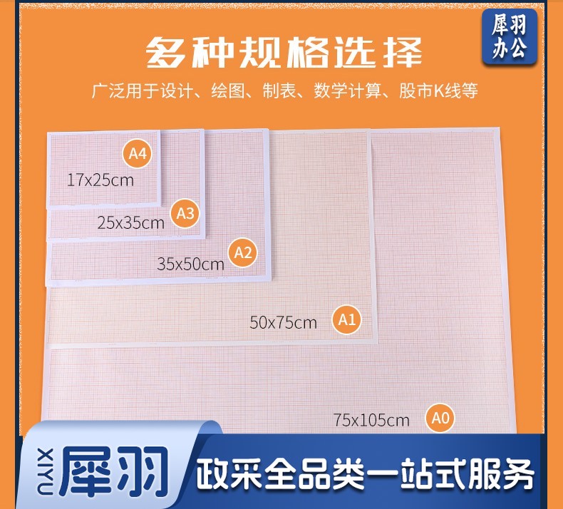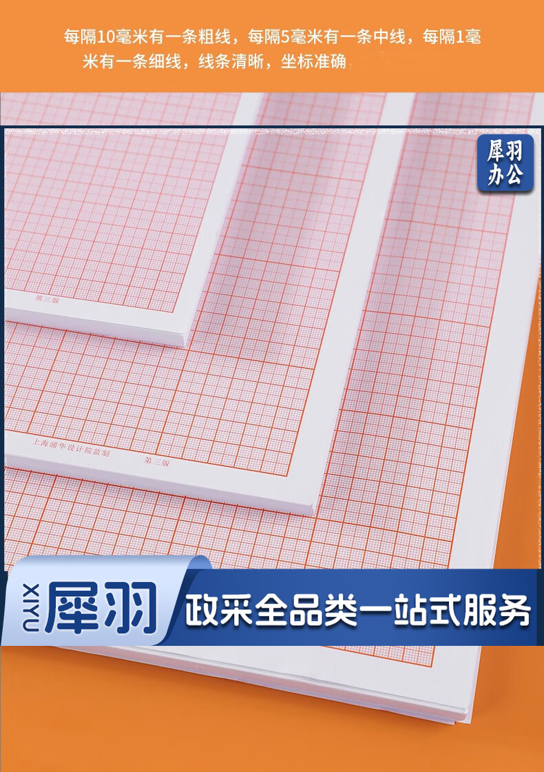 坐标纸计算纸 绘图纸对数红色格子加厚座标纸毫米格子标准款 A3/8开(25*35厘米)加厚100张