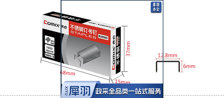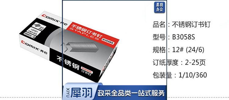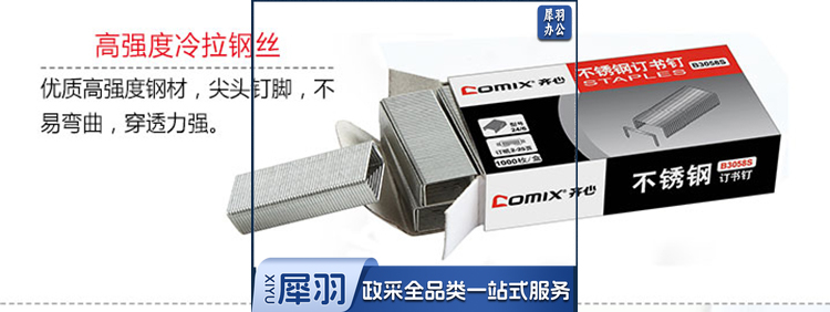 齐心/COMIX B3058S 不锈钢订书钉 24/6 1000枚/盒 镍 单位:盒