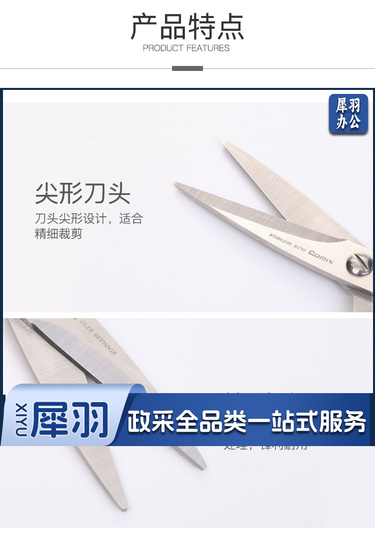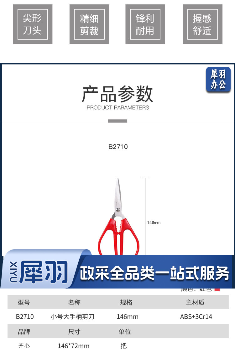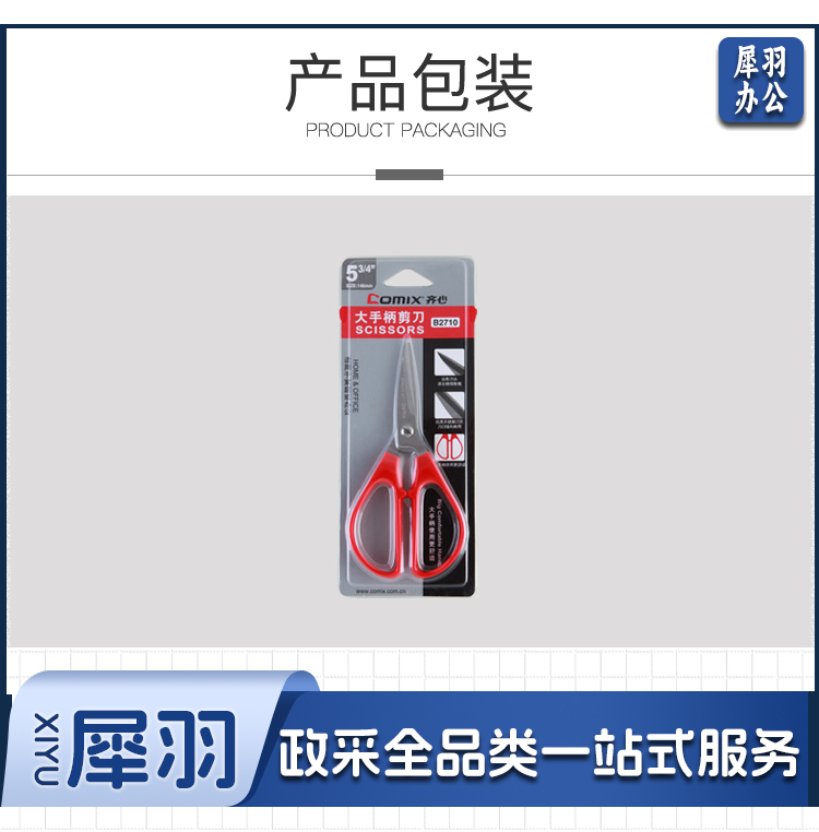 齐心/COMIX B2710 小号大手柄剪刀 办公文具146mm 红色 单位:把