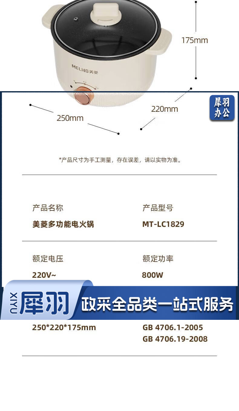 美菱(MeiLing)MT-LC1829多功能电火锅电煮炖锅电锅一体