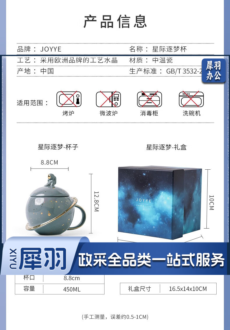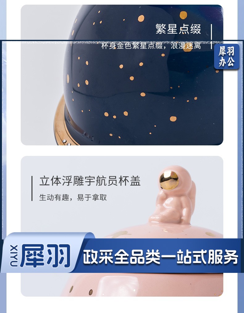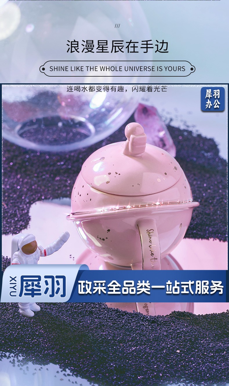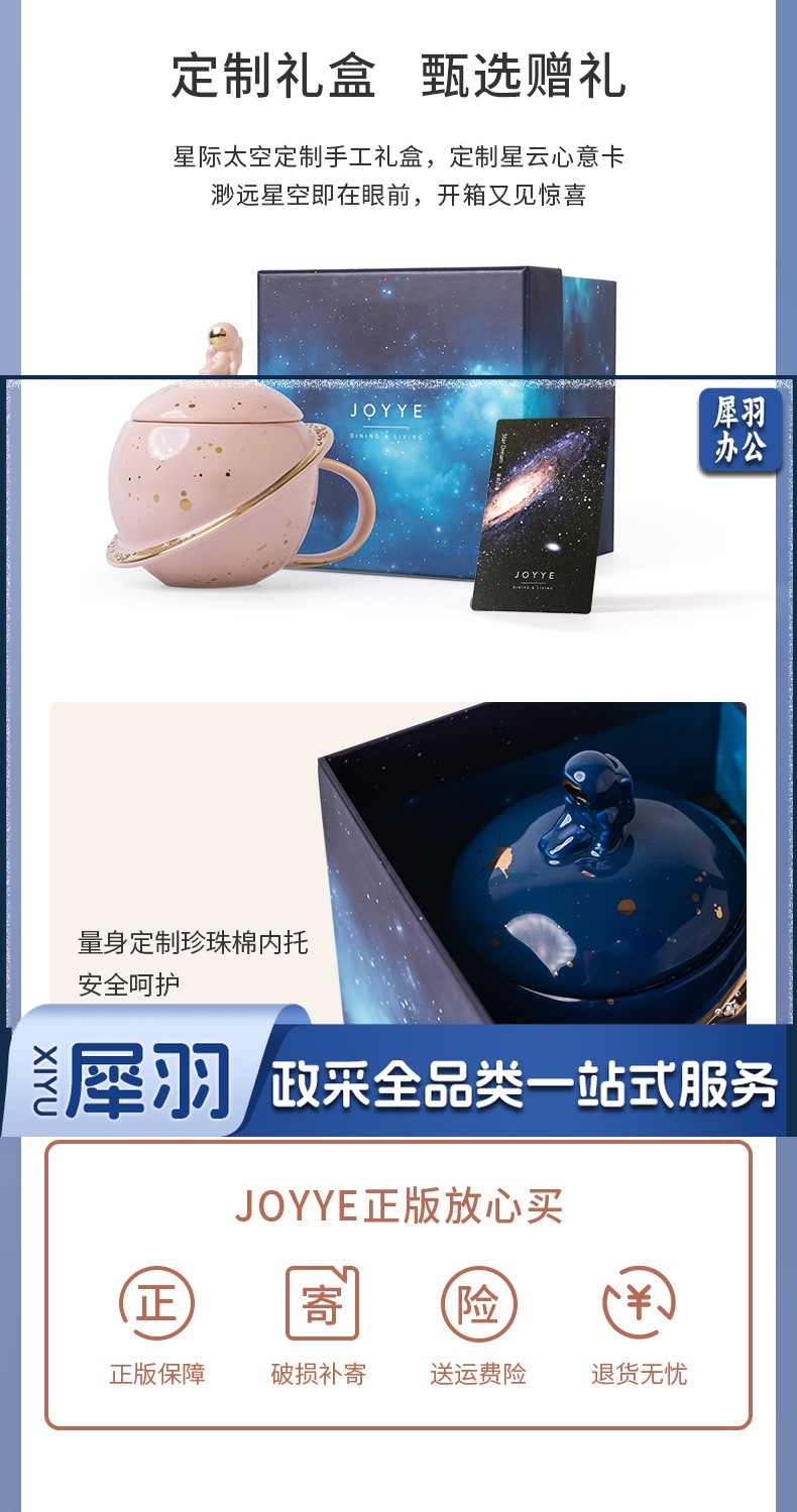JOYYE星际逐梦杯 宇航员系列水杯陶瓷杯 粉色450ml(个)