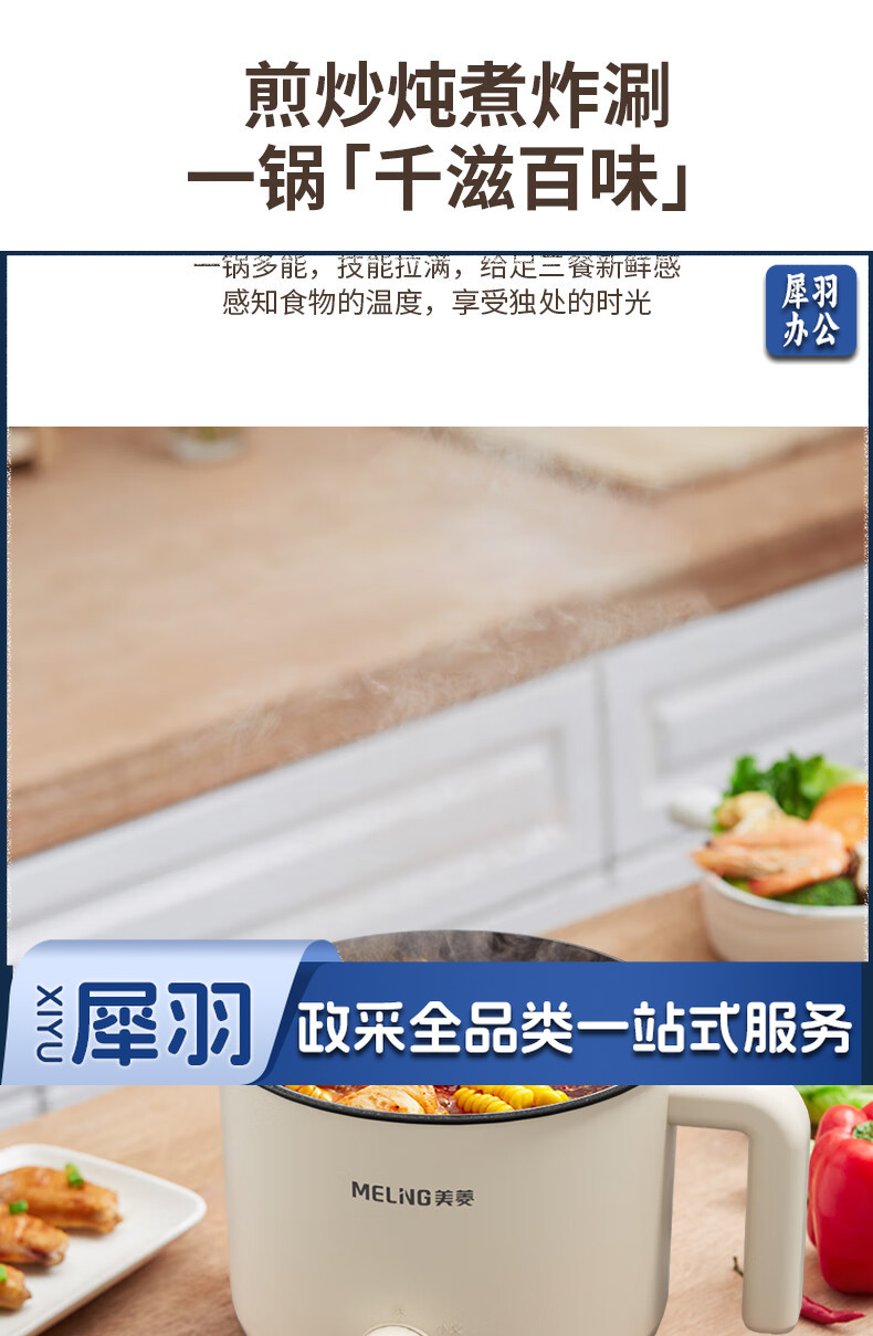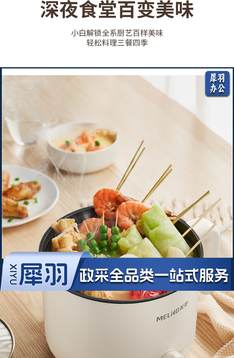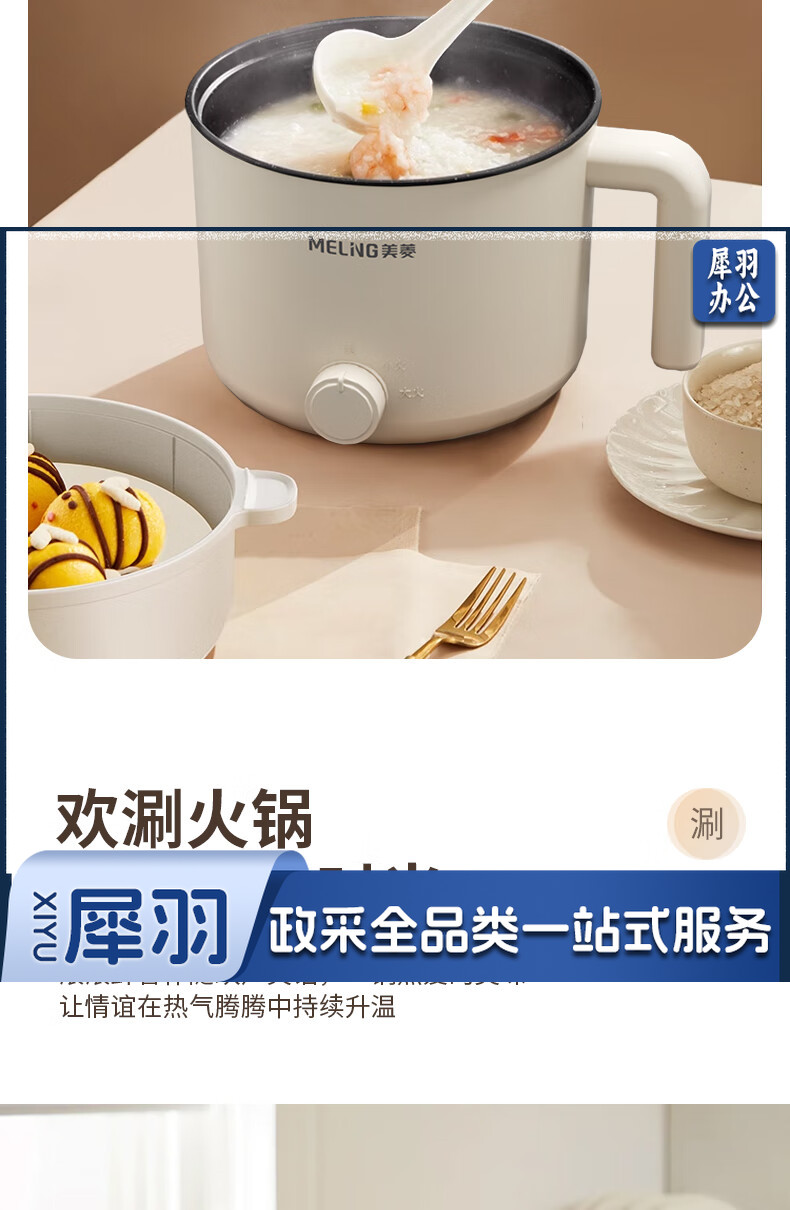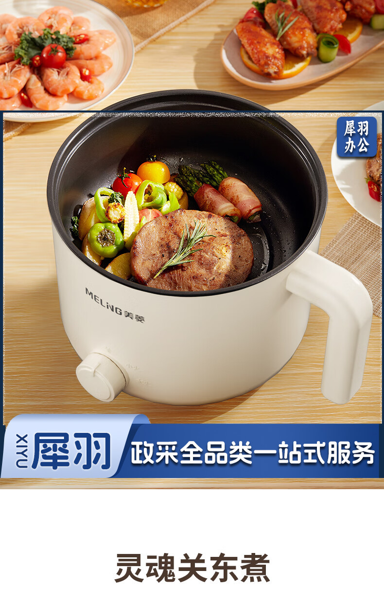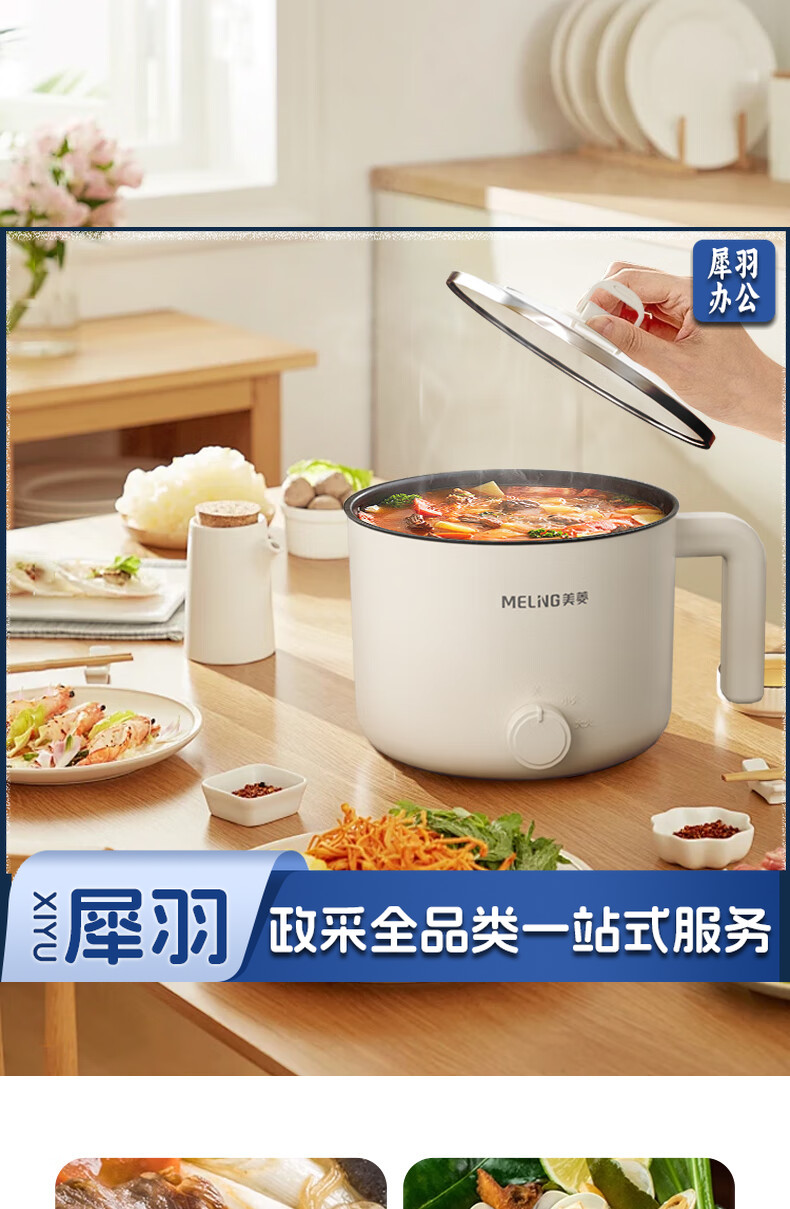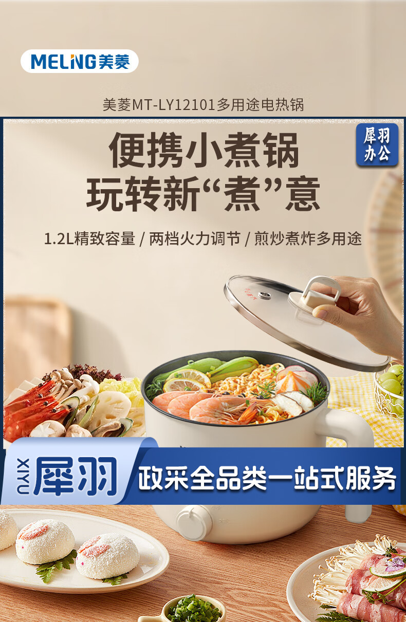 美菱(MeiLing)MT-LY12101多用途电热锅电煮锅 1.2L容量 自动断电两档火候 白色