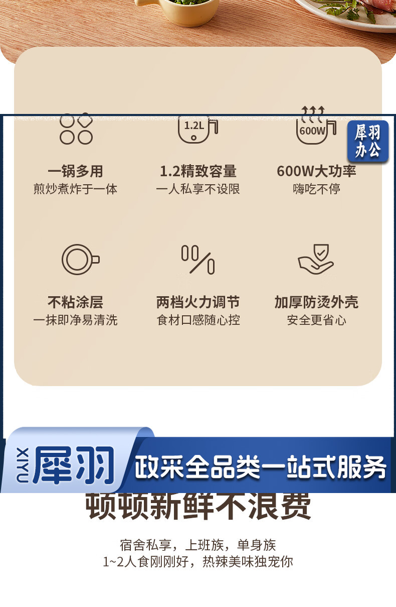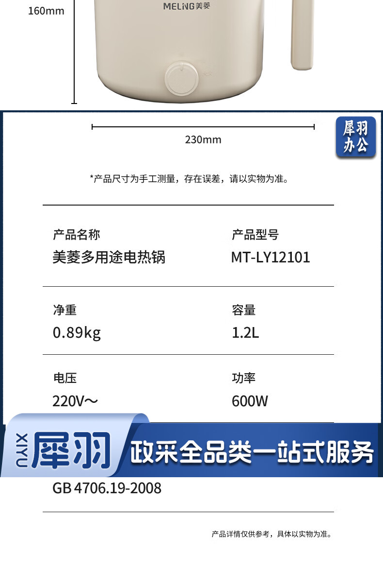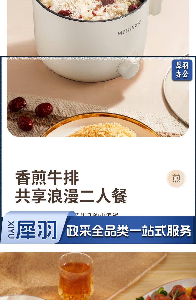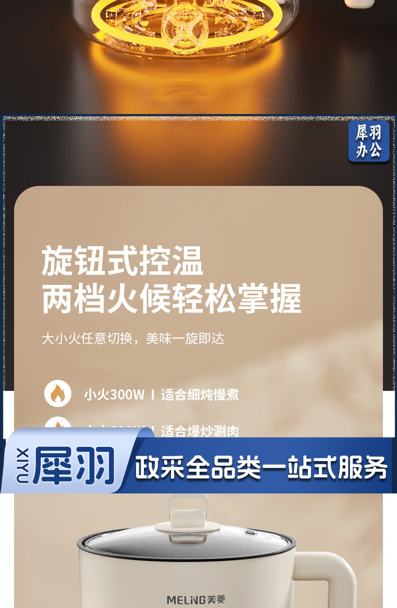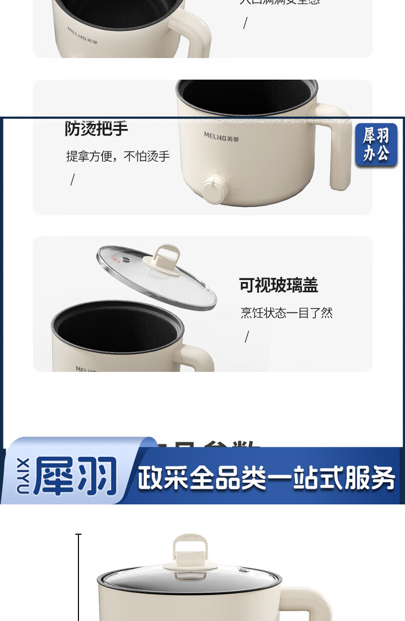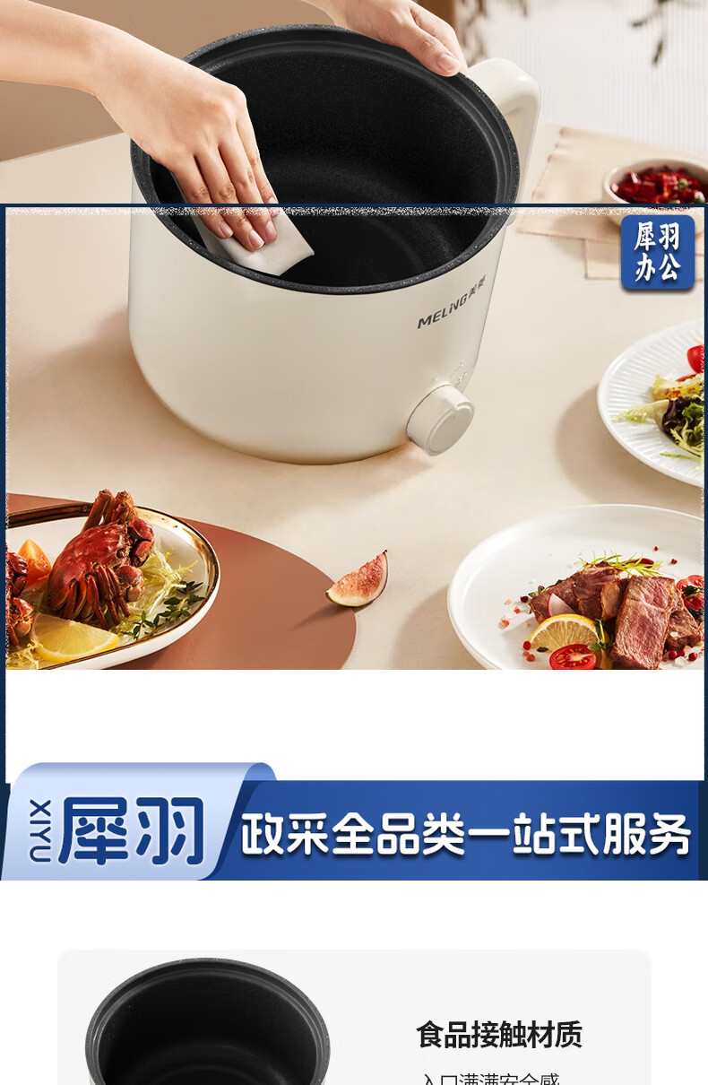 美菱(MeiLing)MT-LY12101多用途电热锅电煮锅 1.2L容量 自动断电两档火候 白色