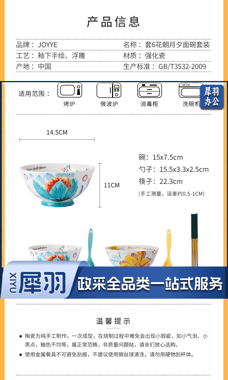 JOYYE花朝月夕面碗套装 碗*2勺子*2筷子*2(套)