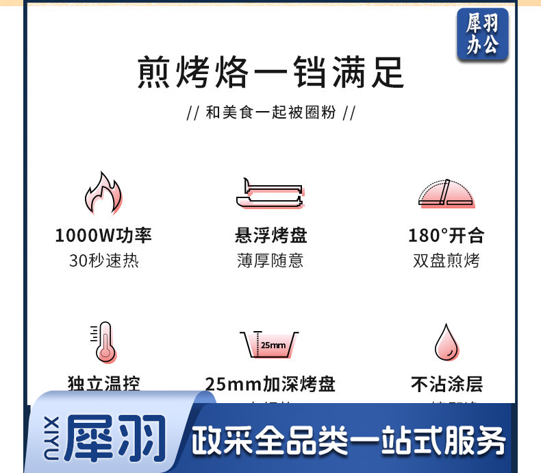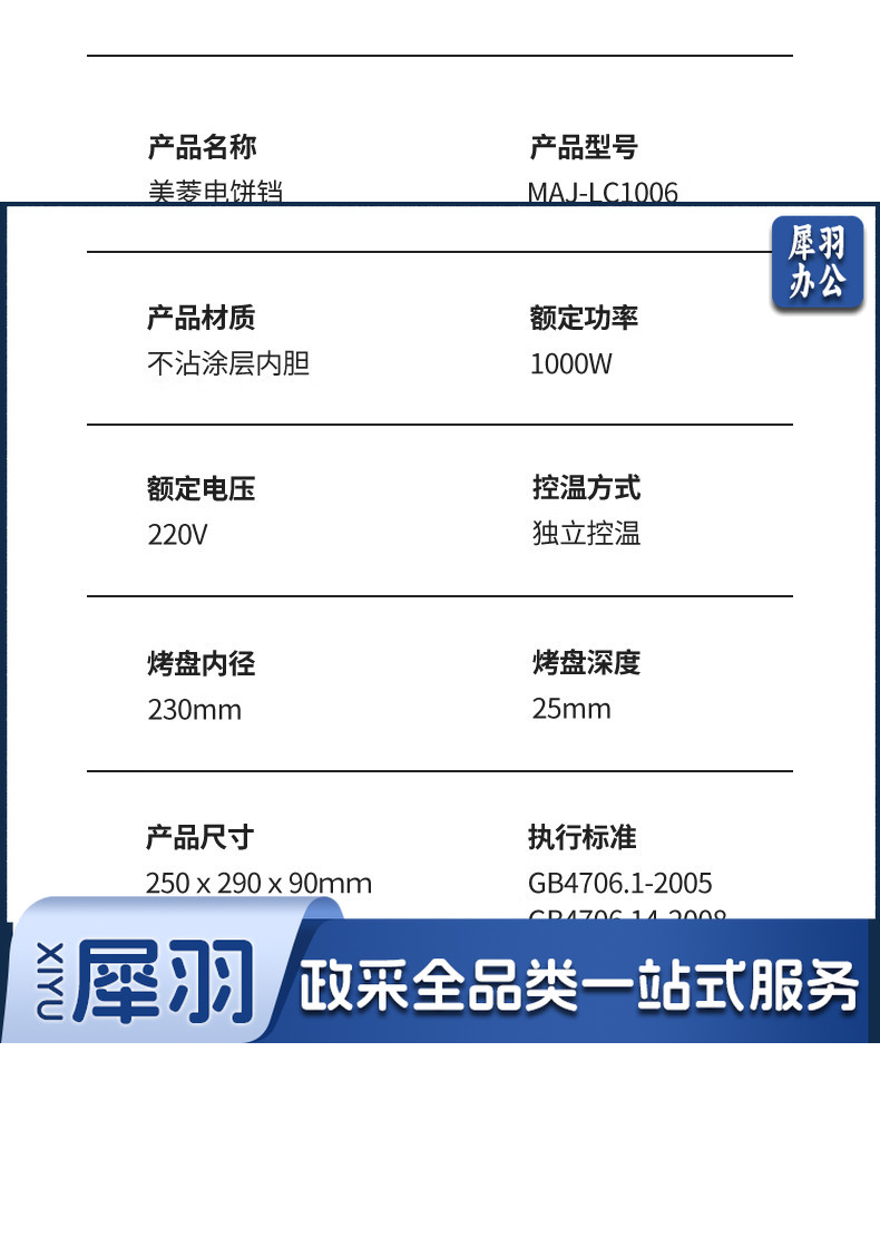 美菱(MeiLing)MAJ-LC1006电饼铛1000W大功率加热迅速 上下盘自由控温