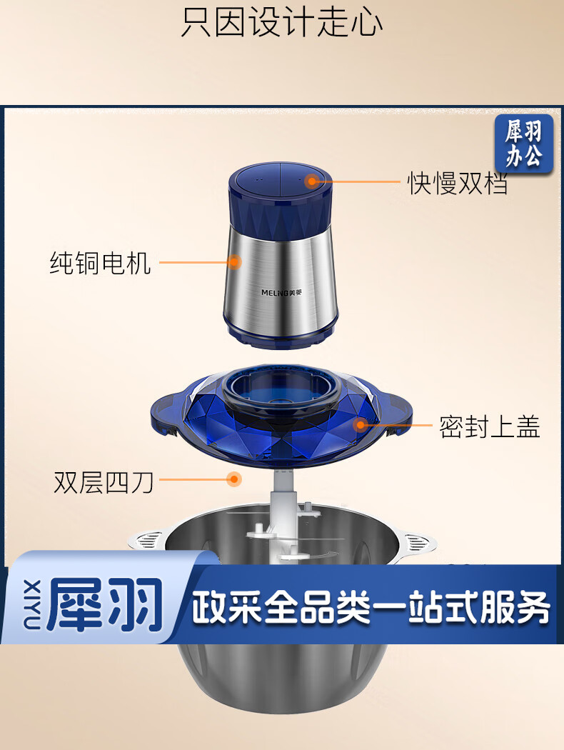 美菱(MeiLing)MM-LC1821碎肉机 1.8L容量静音设计不锈钢款