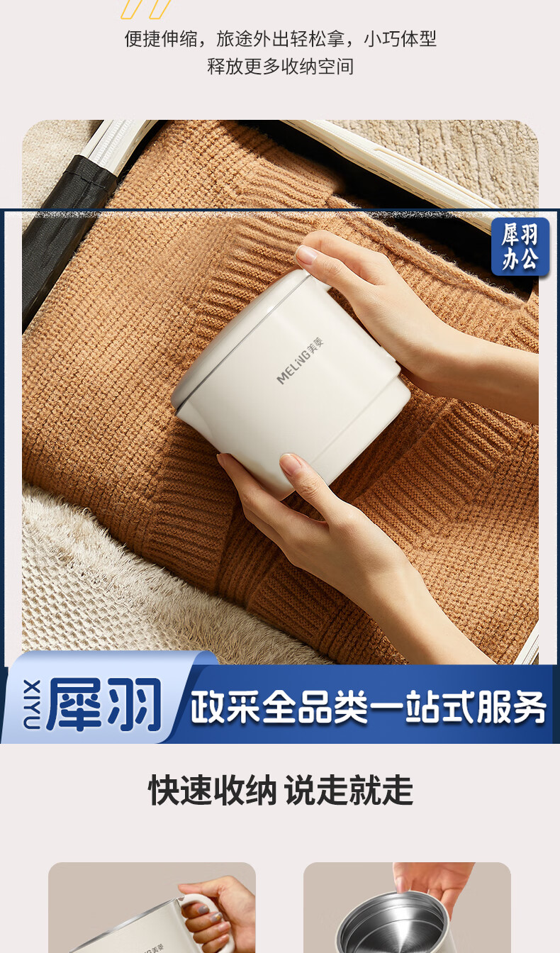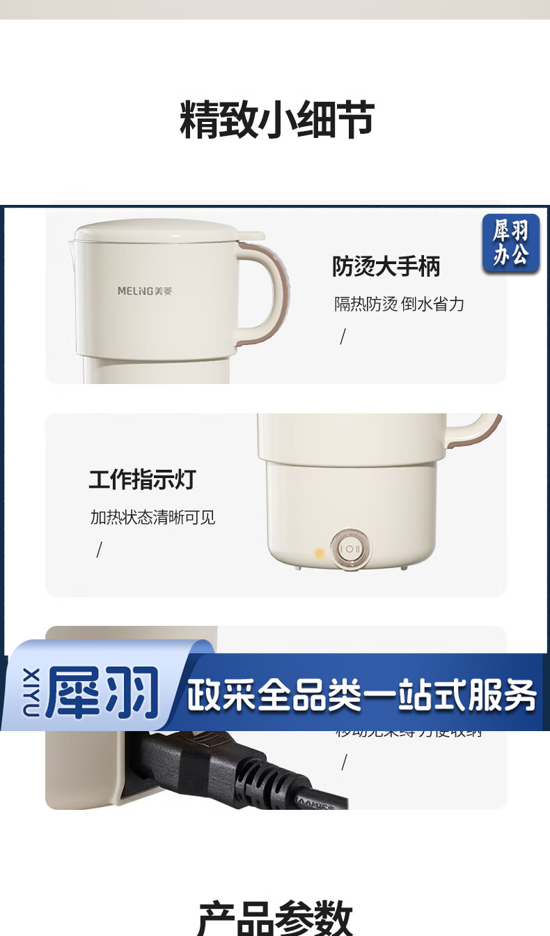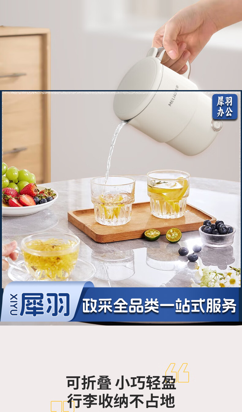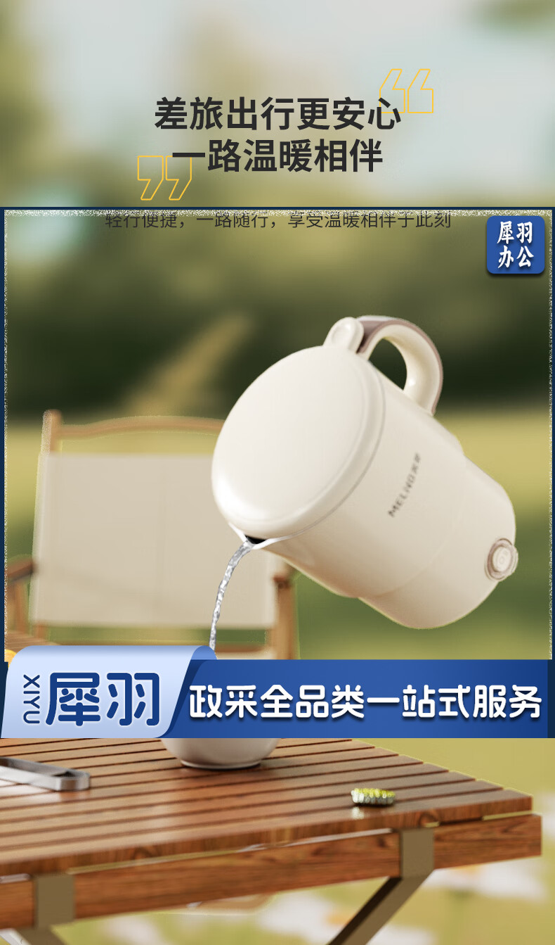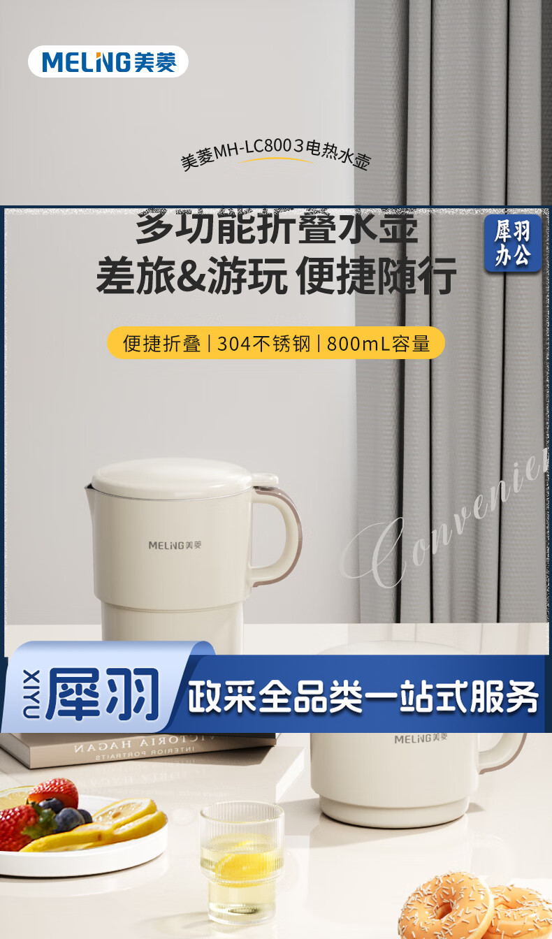 美菱(MeiLing)MH-LC8003电热水壶折叠壶 0.8L容量 304不锈钢双层防烫 白色