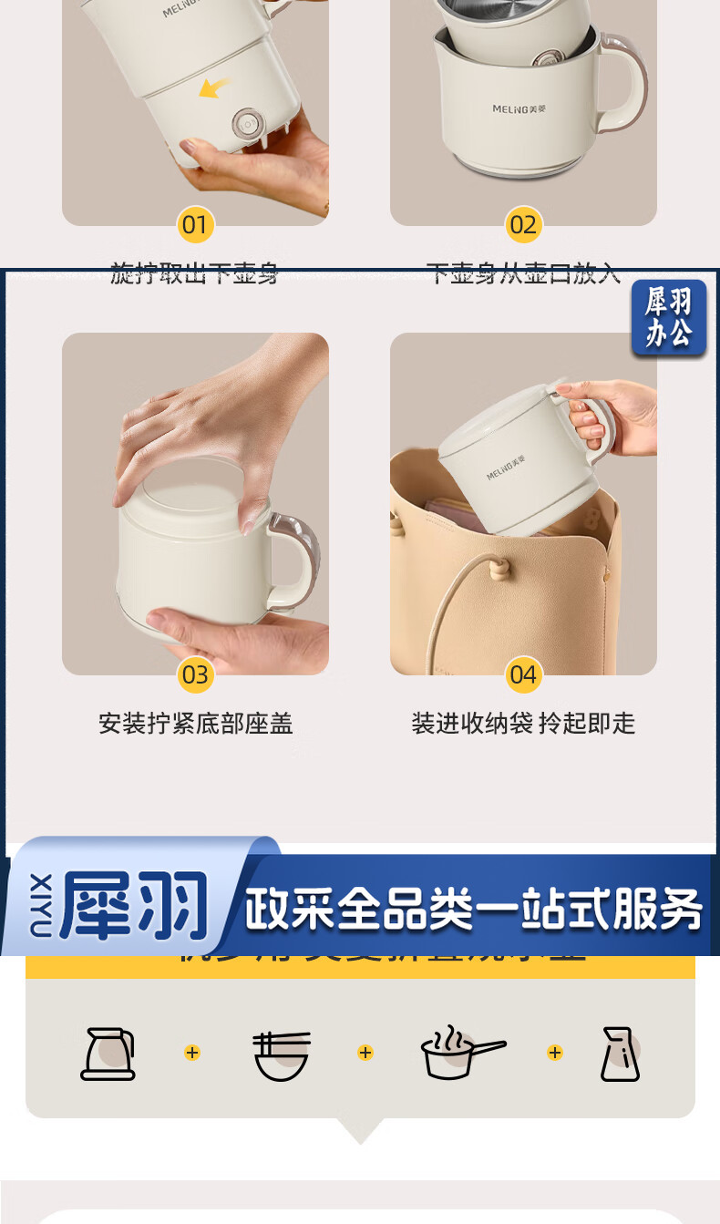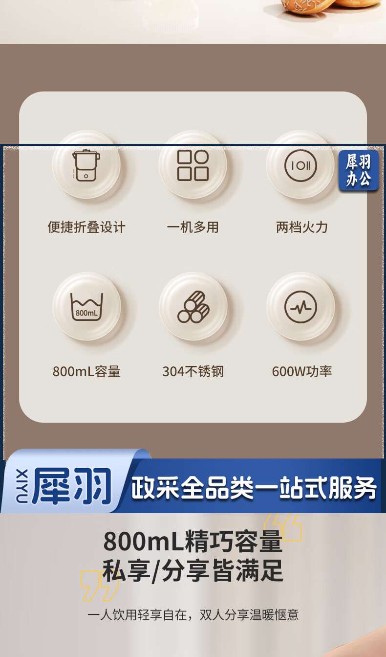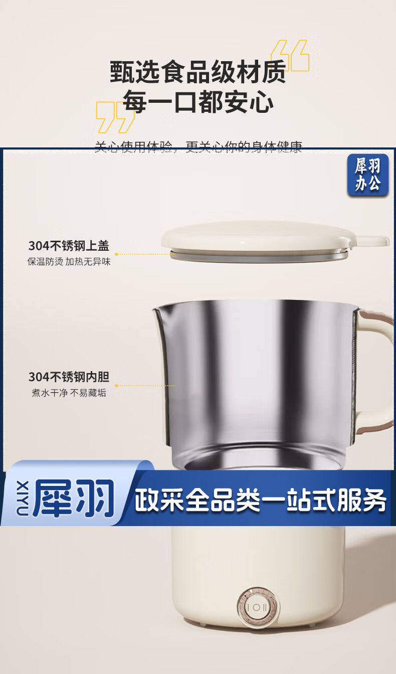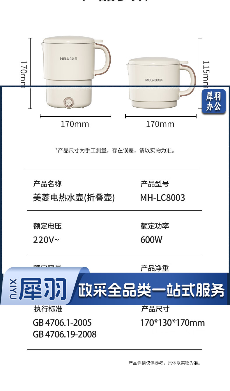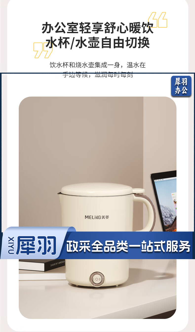 美菱(MeiLing)MH-LC8003电热水壶折叠壶 0.8L容量 304不锈钢双层防烫 白色