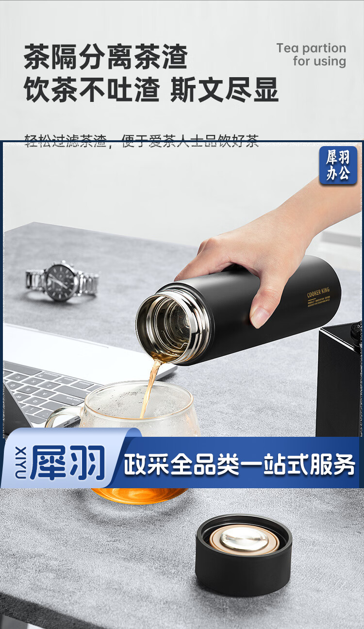 炊大皇(COOKER KING)YD48Z1保温杯 316L不锈钢茶水分离 智能显温 黑色 490ml cyg-240221114545