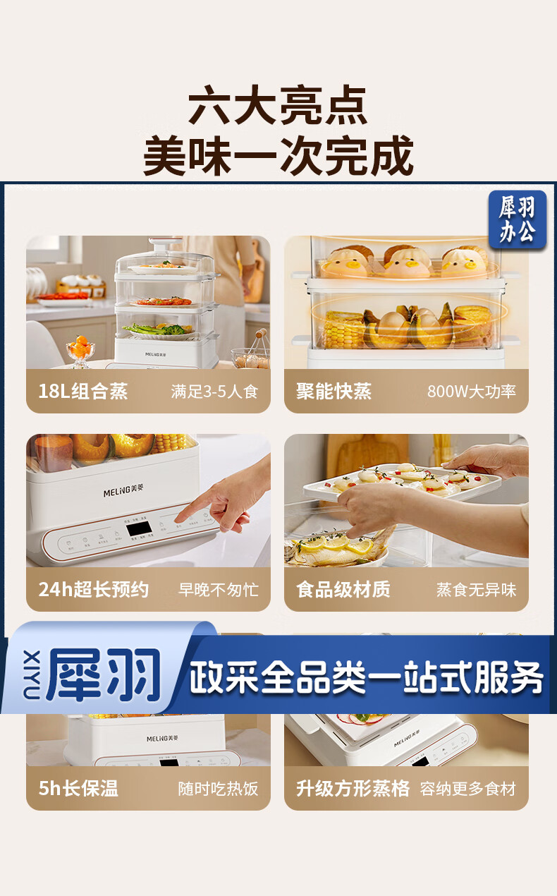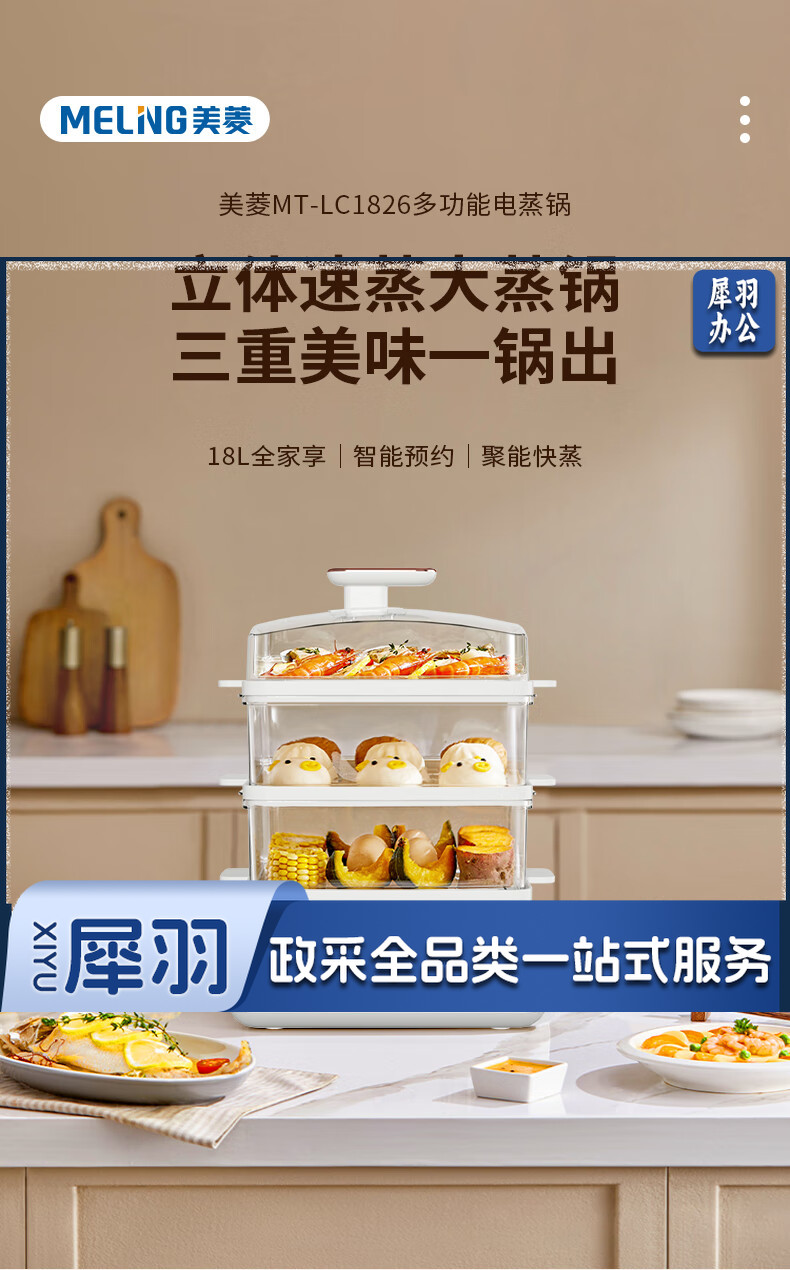 美菱(MeiLing)MT-LC1826多功能电蒸锅 18L三层大容量 预约保温可视化透明机身