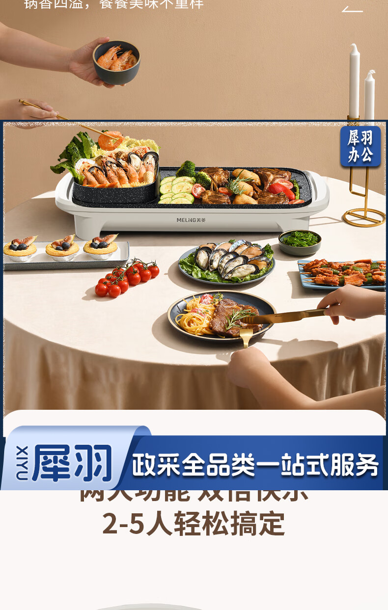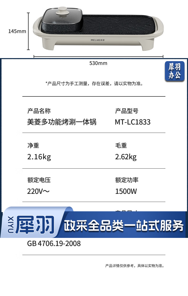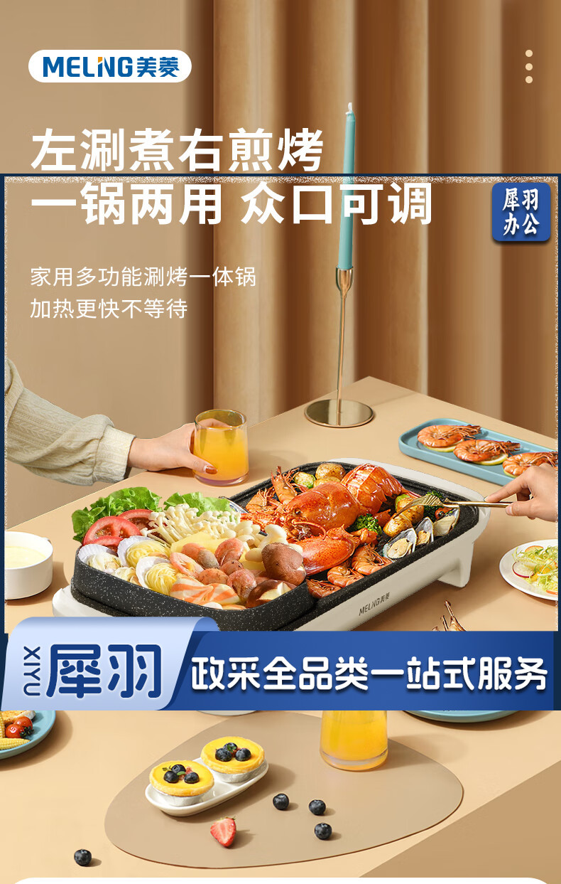美菱(MeiLing)MT-LC1833多功能涮烤一体锅1500W大功率五档火力可调