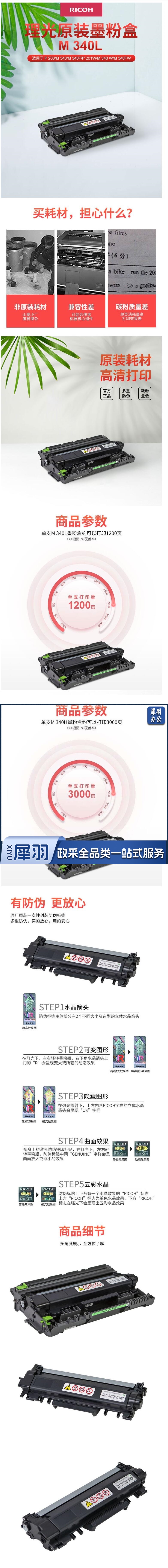 理光(Ricoh)M 340L 粉盒 墨粉 碳粉 适用理光P 200 W 和 M 340F W M (1200页)