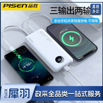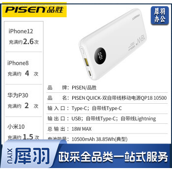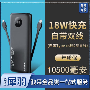 品胜(PISEN) 自带线充电宝PD18W双向快充移动电源小巧便携适用苹果12手机华为type-c 自带线充电宝18W黑色10500mAh