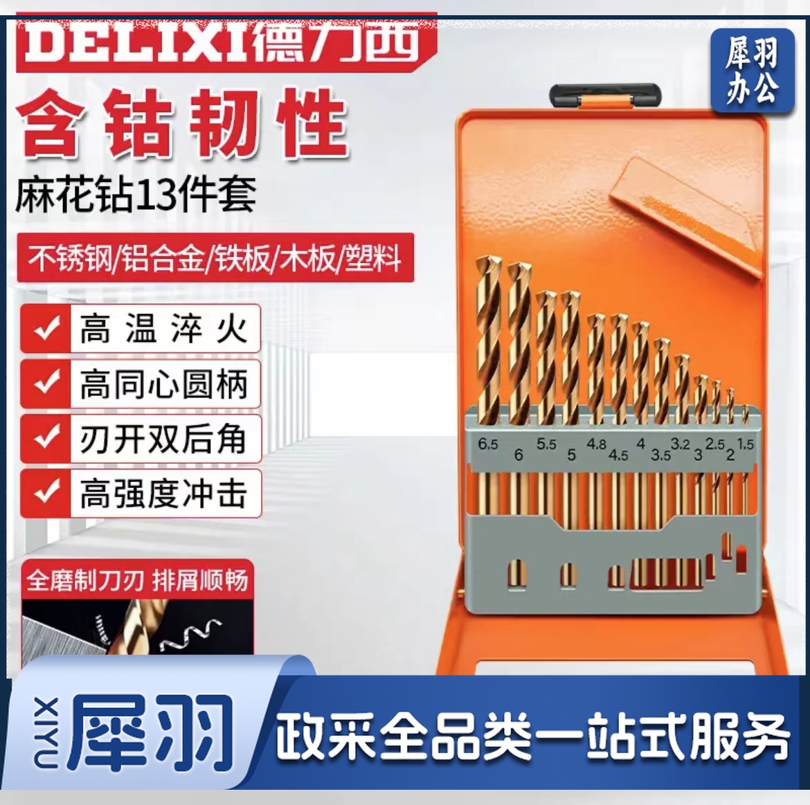 高硬度麻花钻头不锈钢合金钢铁含钴钨钢打孔DLX-042T【13件套】