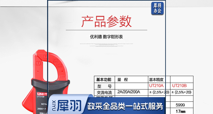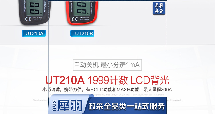 优利德(UNI-T)UT210A 迷你数字交流钳形表 钳型万用表