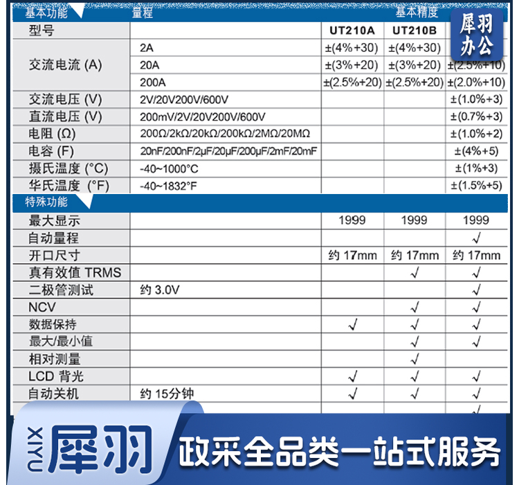 优利德(UNI-T)UT210C 迷你数字钳形表