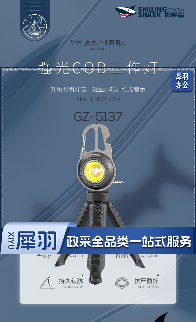 微笑鲨GZ-5137 迷你超亮工作灯充电多功能汽车维修灯高亮度小手电筒便携户外应急随身钥匙扣灯