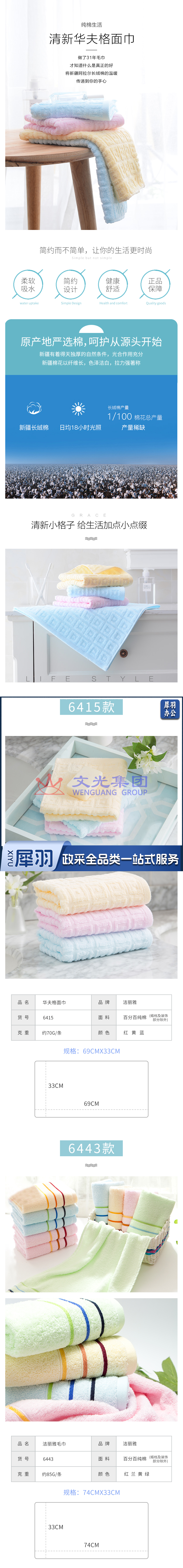 洁丽雅 毛巾 6415 100%棉 1条