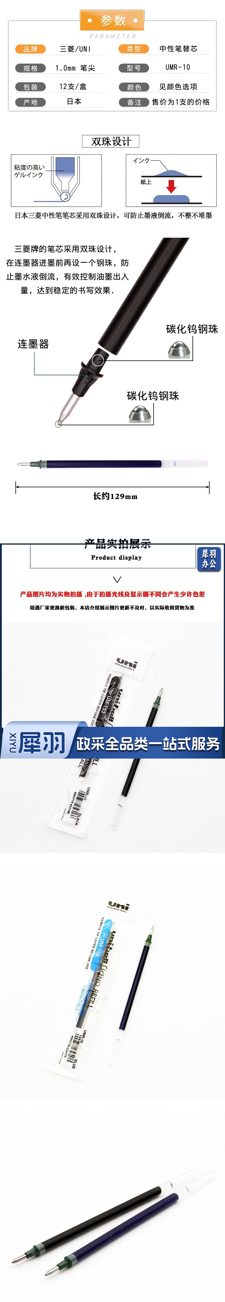三菱(Uni) 中性笔替芯 UMR-10 适用UM-153 1.0mm 黑色 12支装