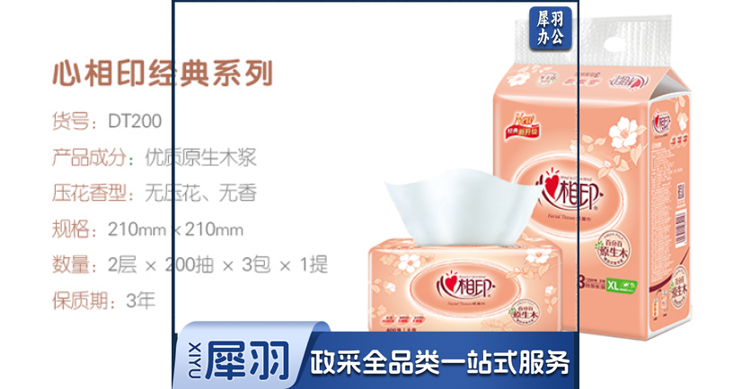 心相印抽纸 经典系列DT200 XL码2层200抽*3包/提纸巾
