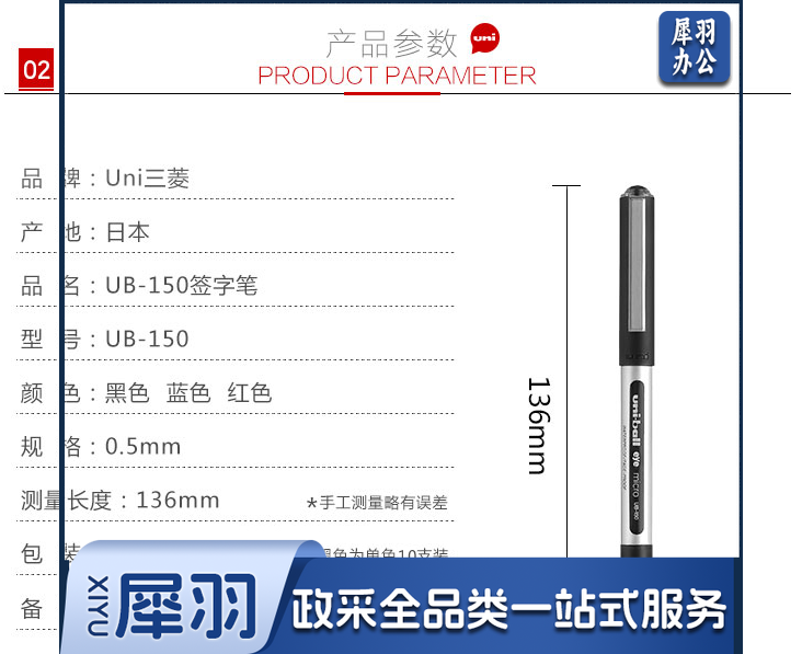 三菱(Uni)UB-150 黑色 直液式走珠笔签字笔 0.5mm 10支装