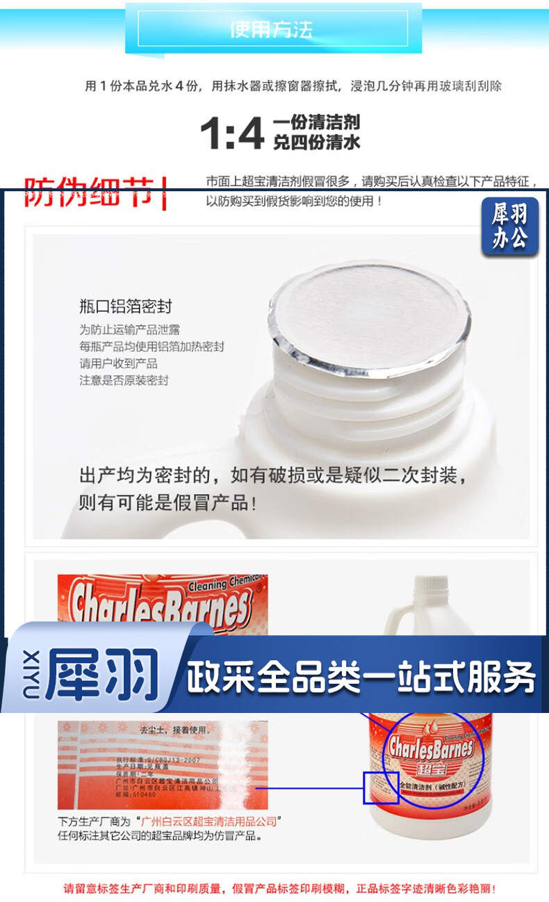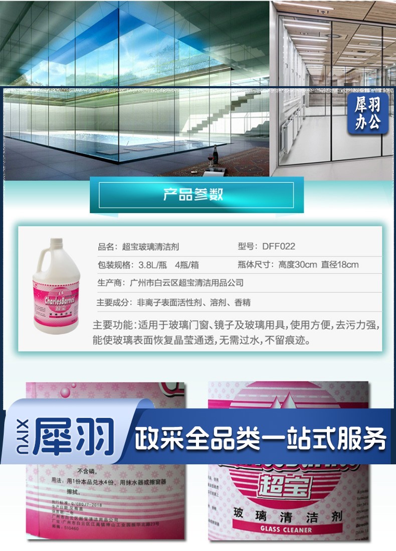 超宝(CHAOBAO)DFF022玻璃清洁剂酒店宾馆商用玻璃除污剂写字楼强力清洗玻璃水除污剂门窗晶亮玻璃3.8L/瓶