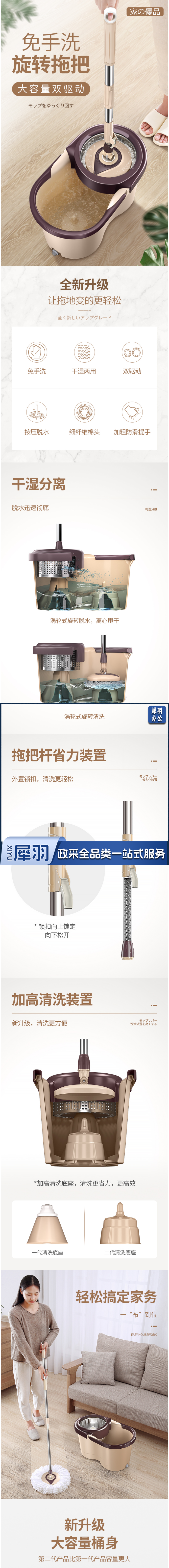 旋转拖把桶免手洗拖布桶懒人墩布好神拖手压式自甩水地拖墩布2个头